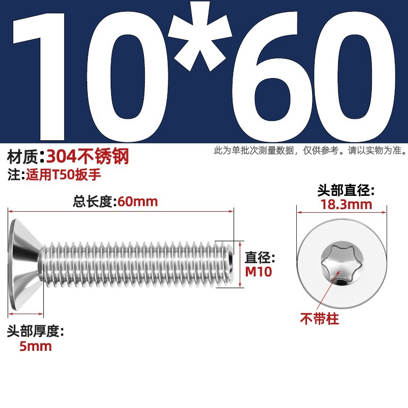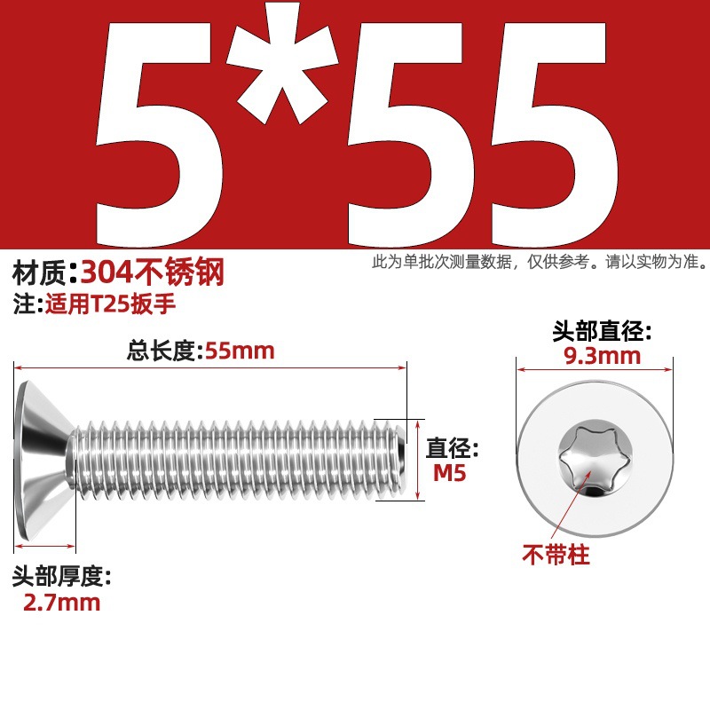 304 스테인레스 스틸 내부 매화형 접시머리 나사 GB2673 도난 방지 플랫 헤드 볼트 M3M4M5M6M8(축 제외)
