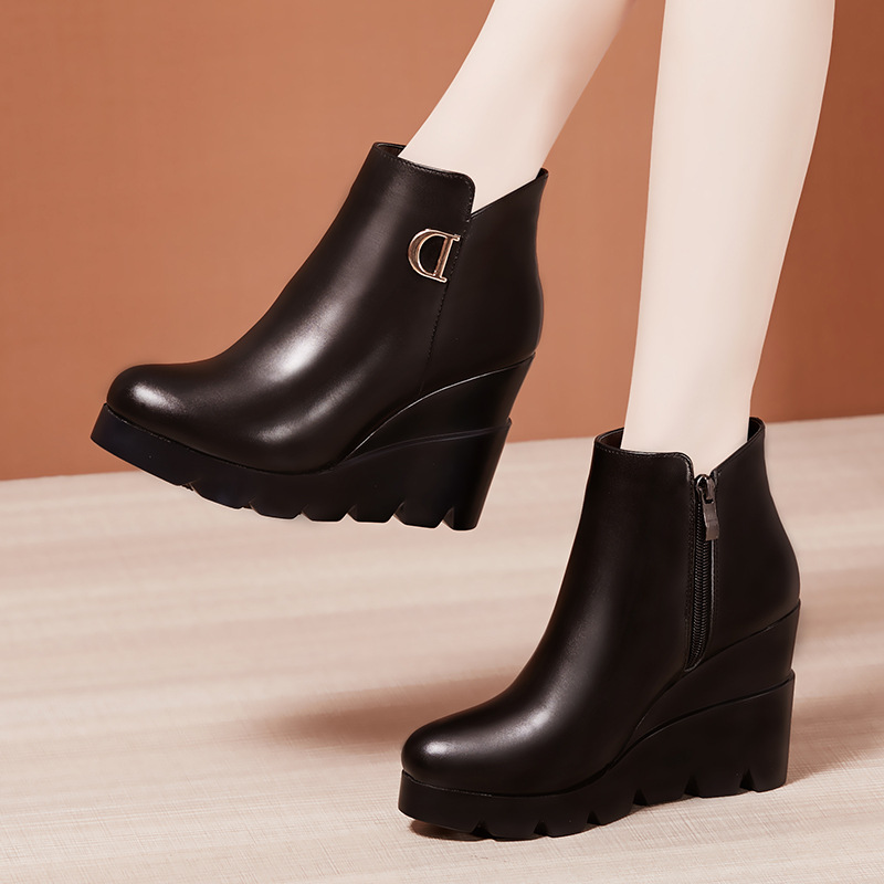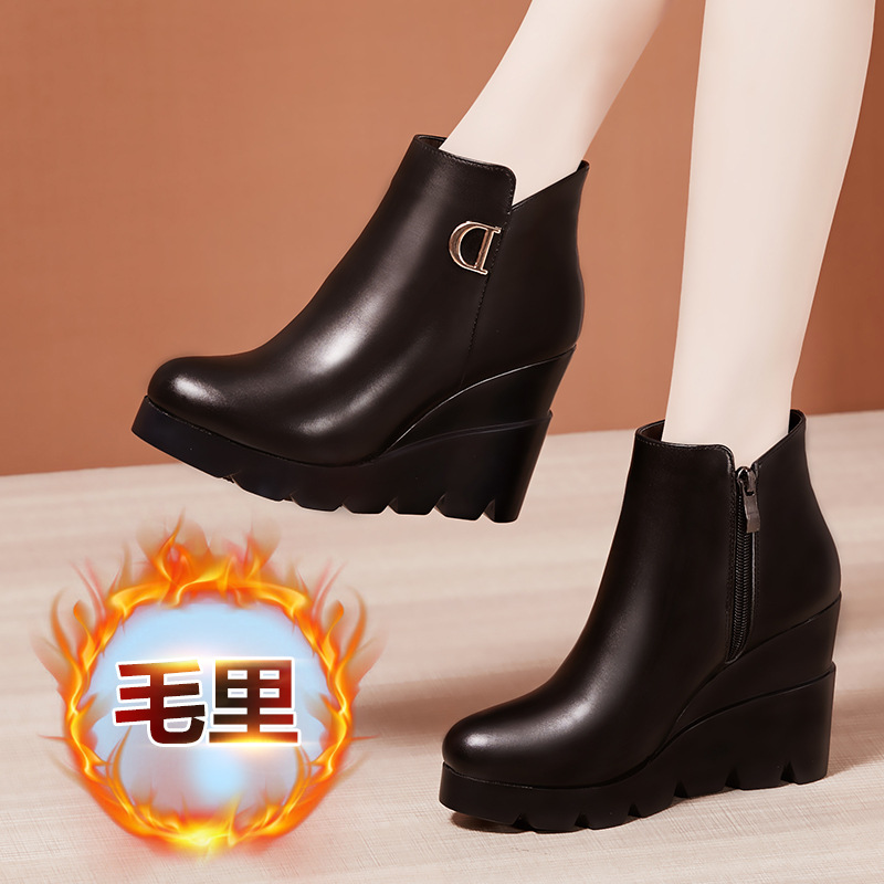 웨지 힐 플랫폼 짧은 부츠 여성의 2019 가을과 겨울 새로운 하이힐 영국 스타일 모든 경기 짧은 플러스 사이즈 마틴 부츠 어머니 부츠스토어 가기