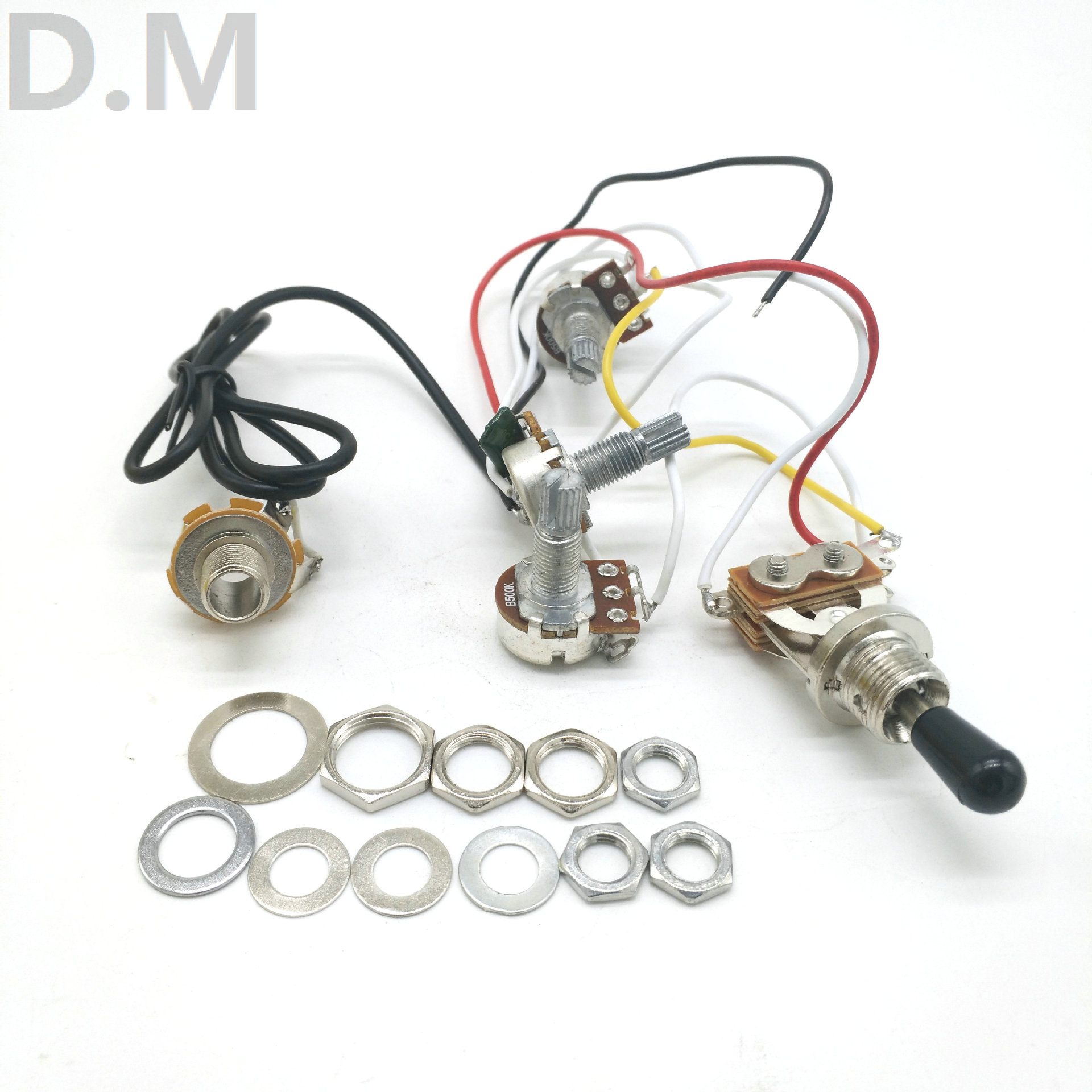 属性:500K电位器,1套配电位器螺母3个垫片3个。插口螺母2个垫片1个,开关螺母1个垫片1个