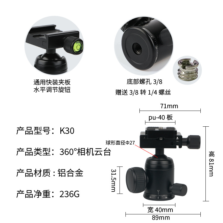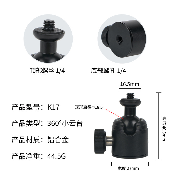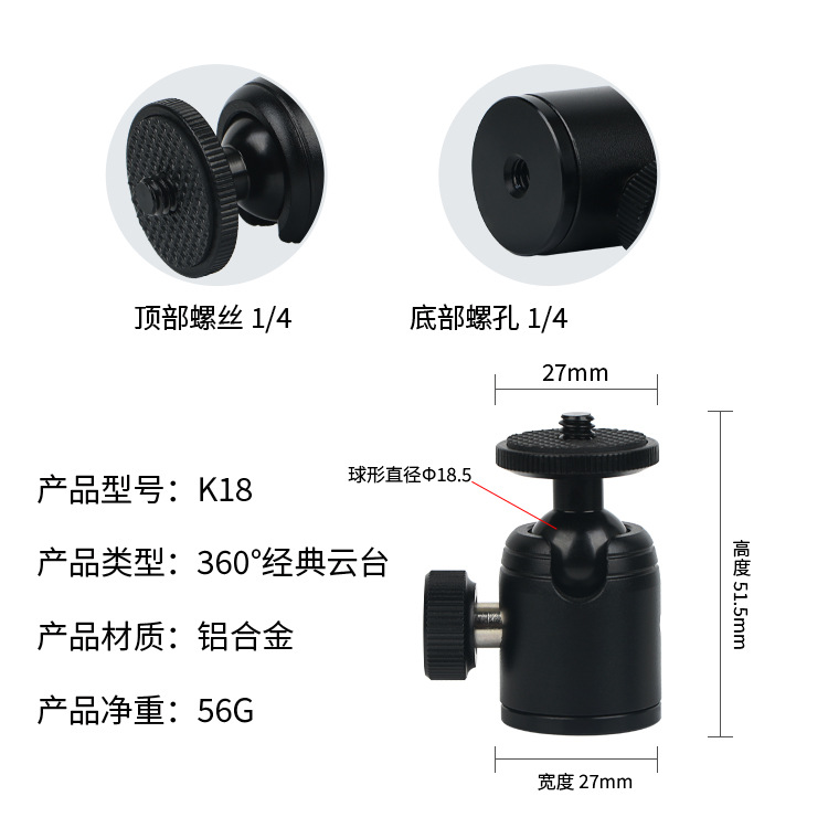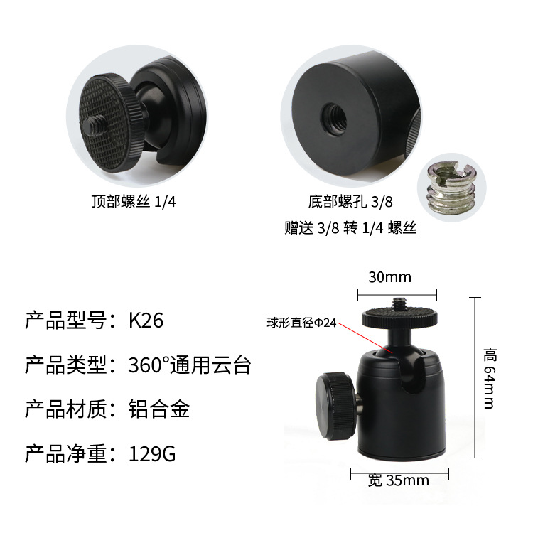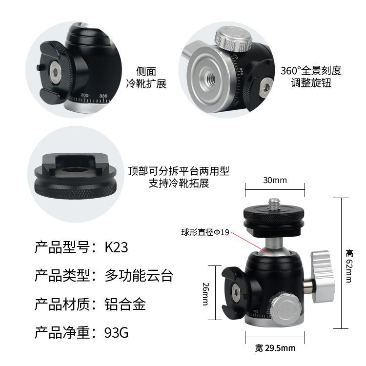 금속 짐벌 알루미늄 합금 구형 짐벌 SLR 카메라 삼각대 라이브 방송 액세서리 촬영 휴대 전화 브래킷
