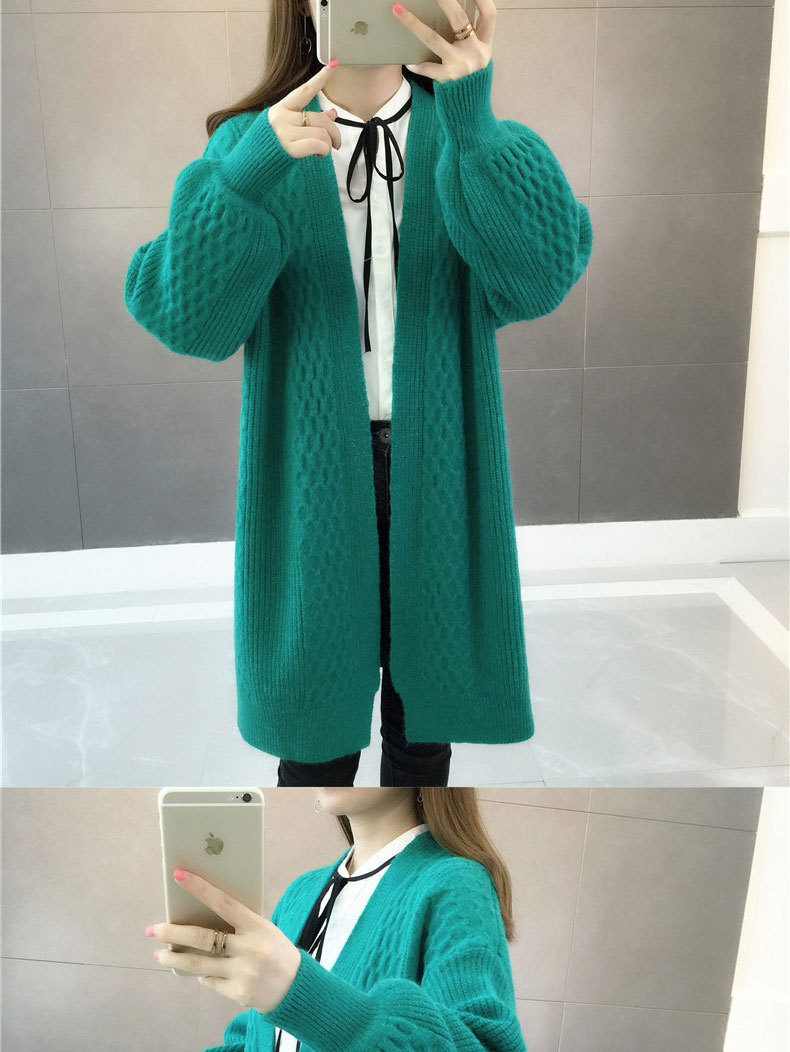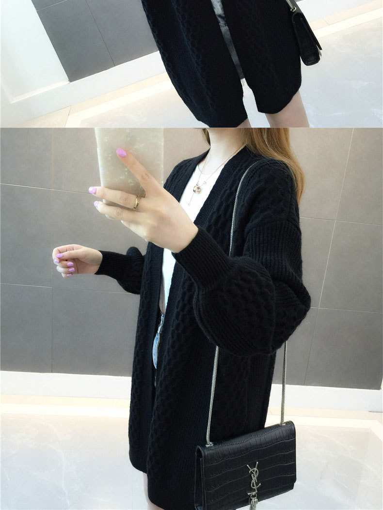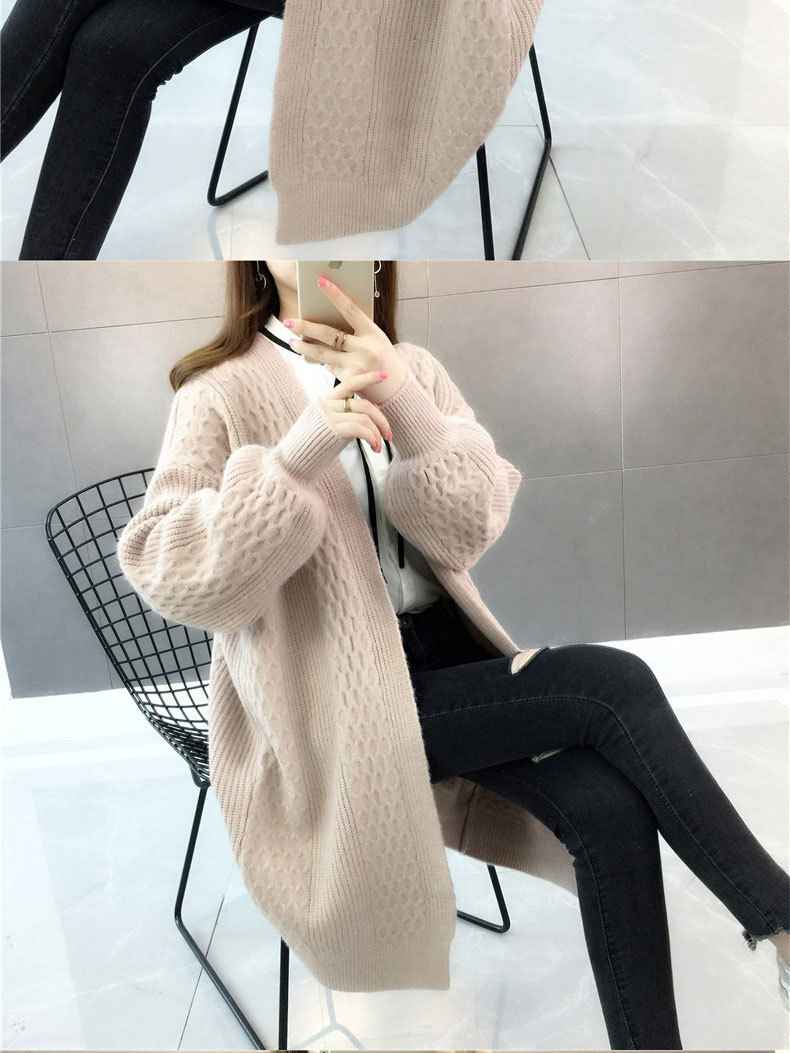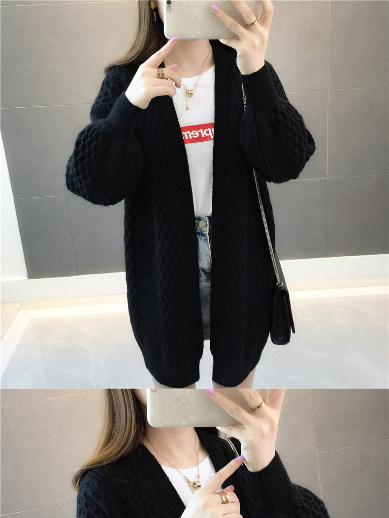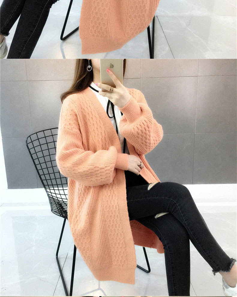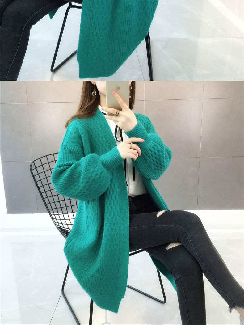 2026 가을 겨울 신상 루즈핏 V넥 랜턴 슬리브 중간 길이 스웨터 가디건 솔리드 컬러 니트 가디건 여성용 아우터스토어 가기