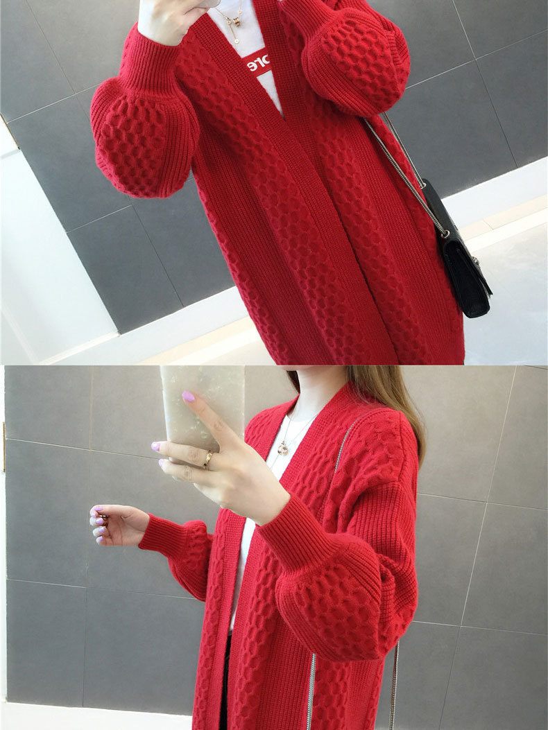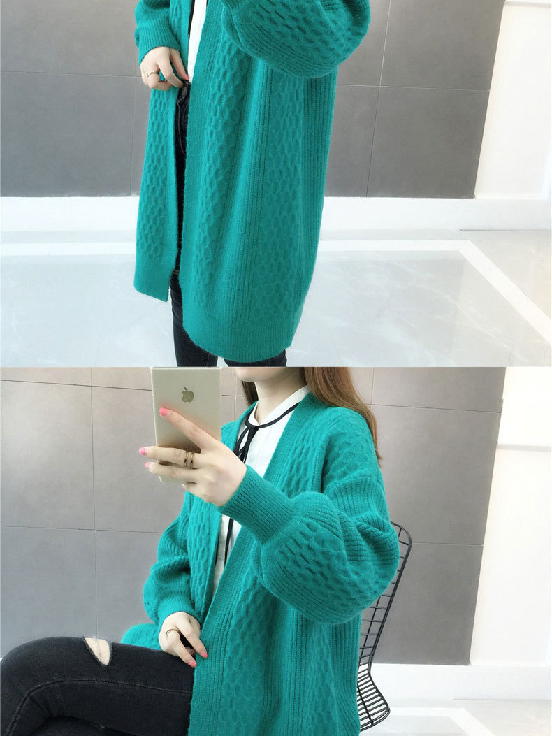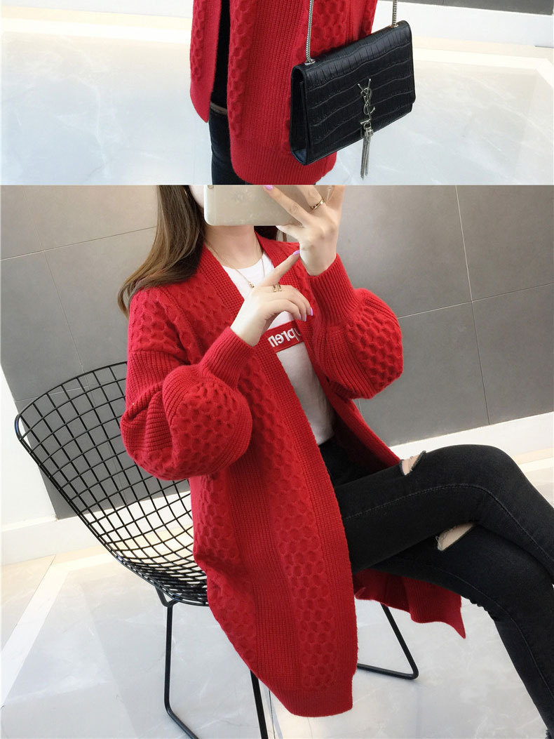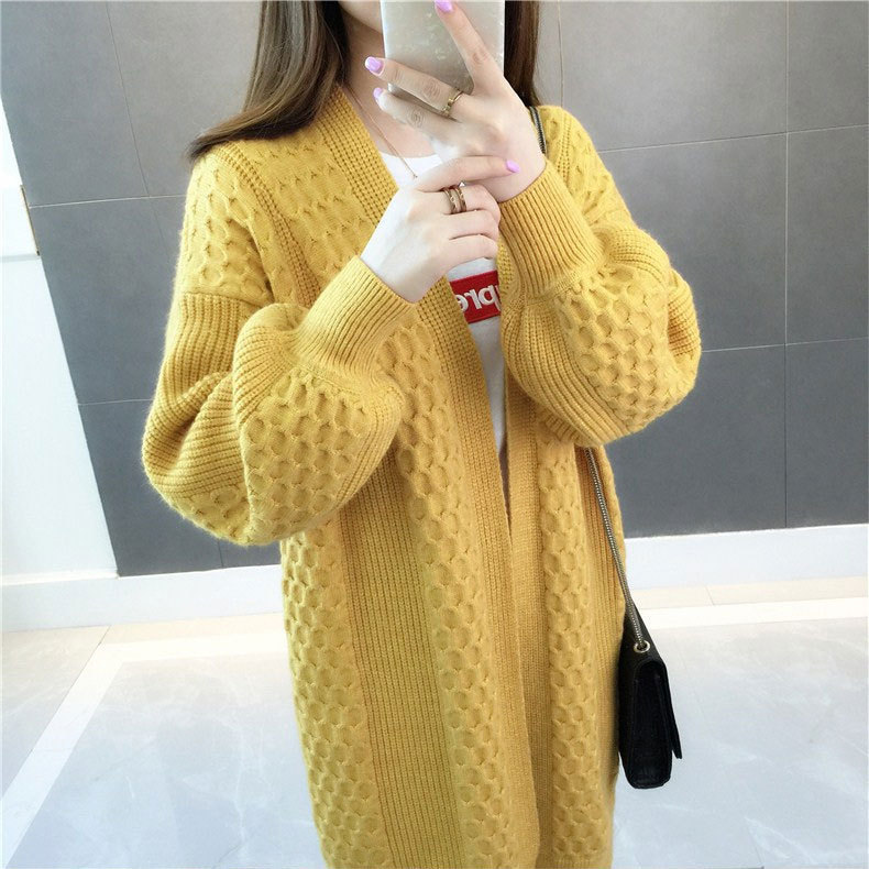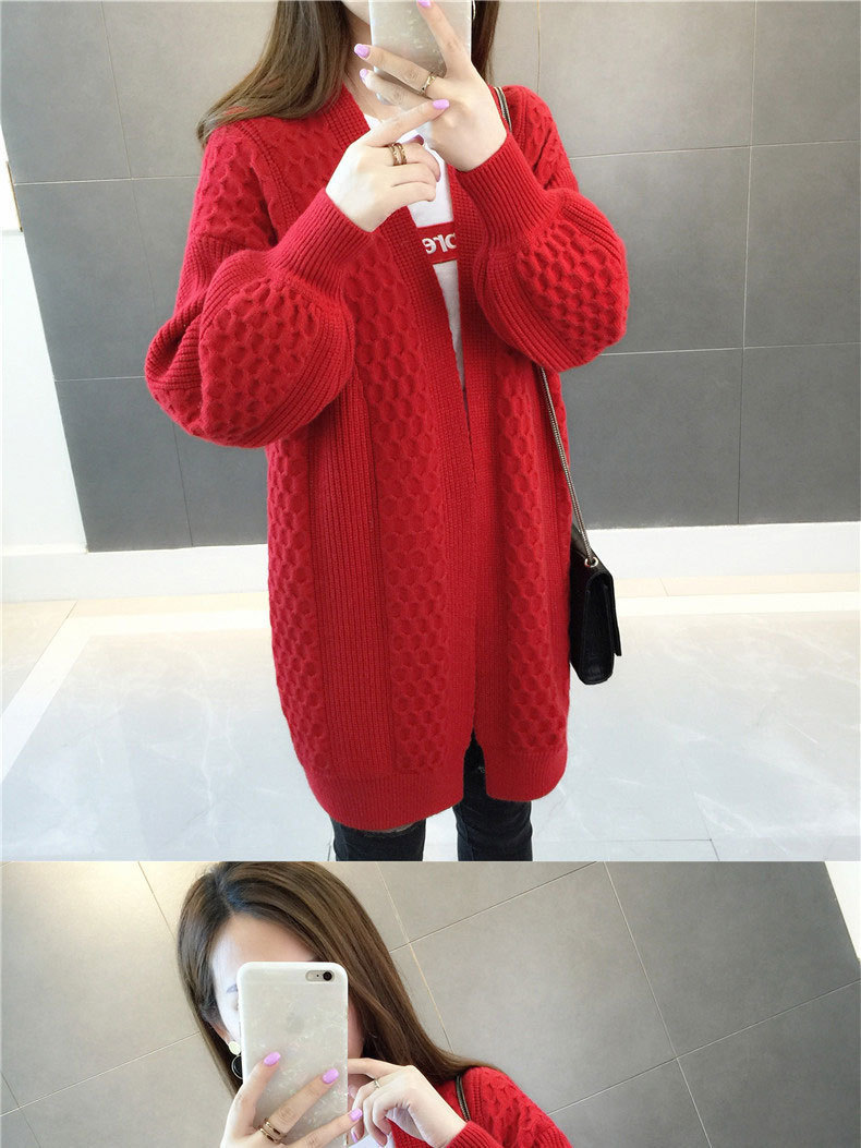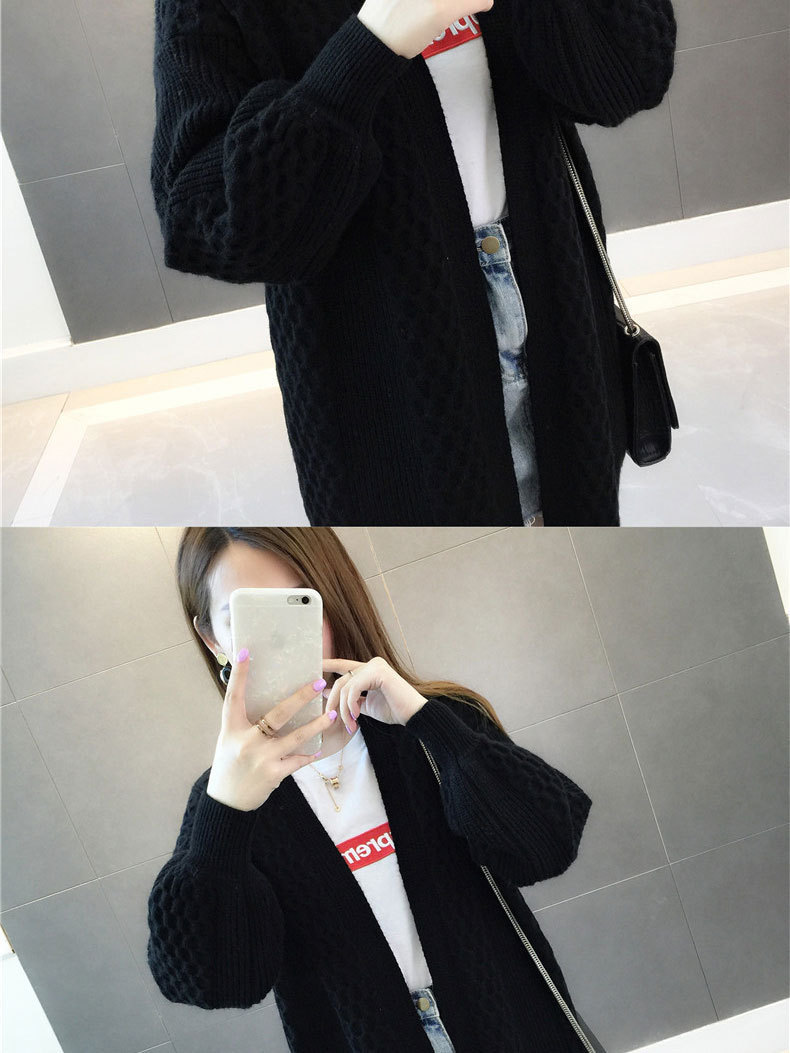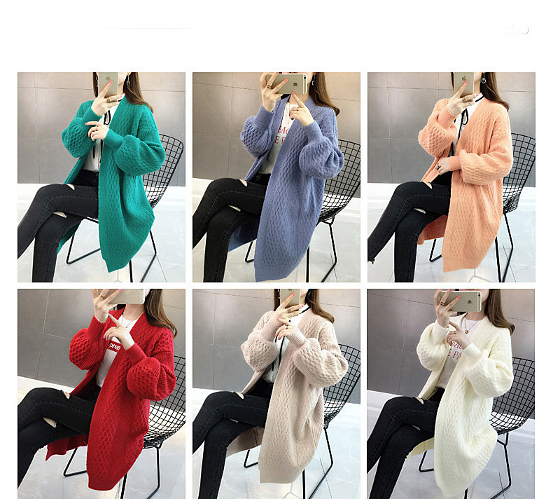 2026 가을 겨울 신상 루즈핏 V넥 랜턴 슬리브 중간 길이 스웨터 가디건 솔리드 컬러 니트 가디건 여성용 아우터스토어 가기