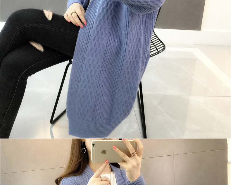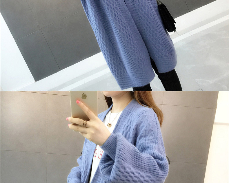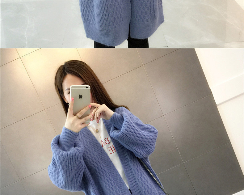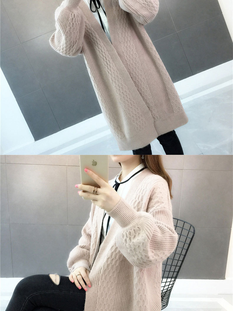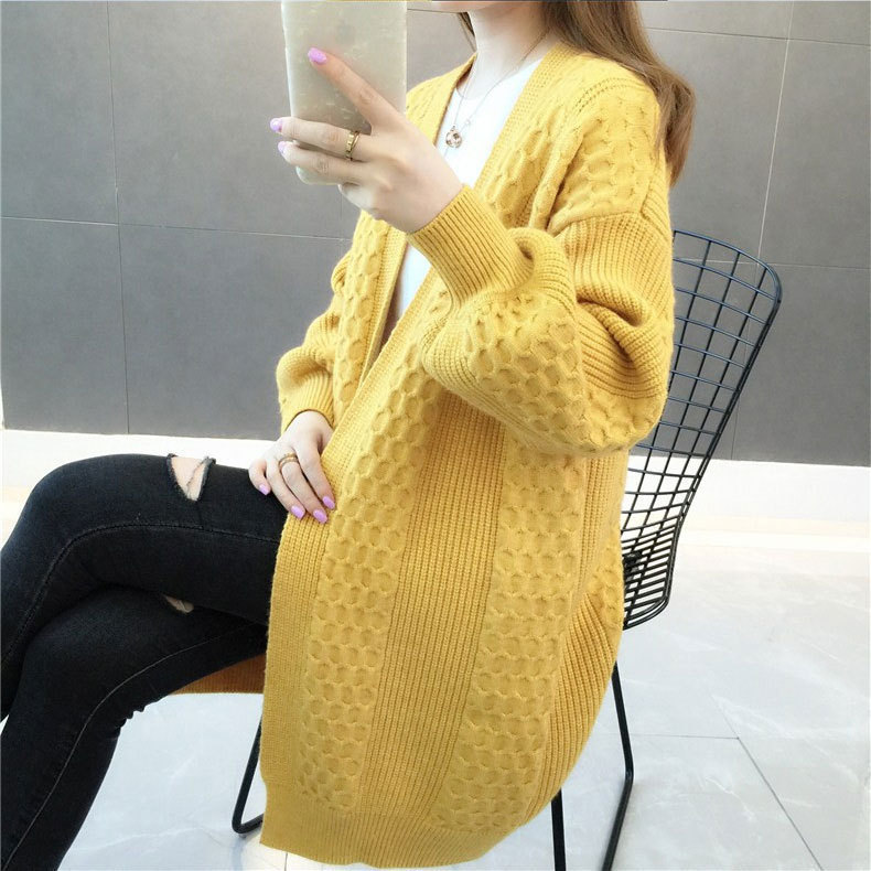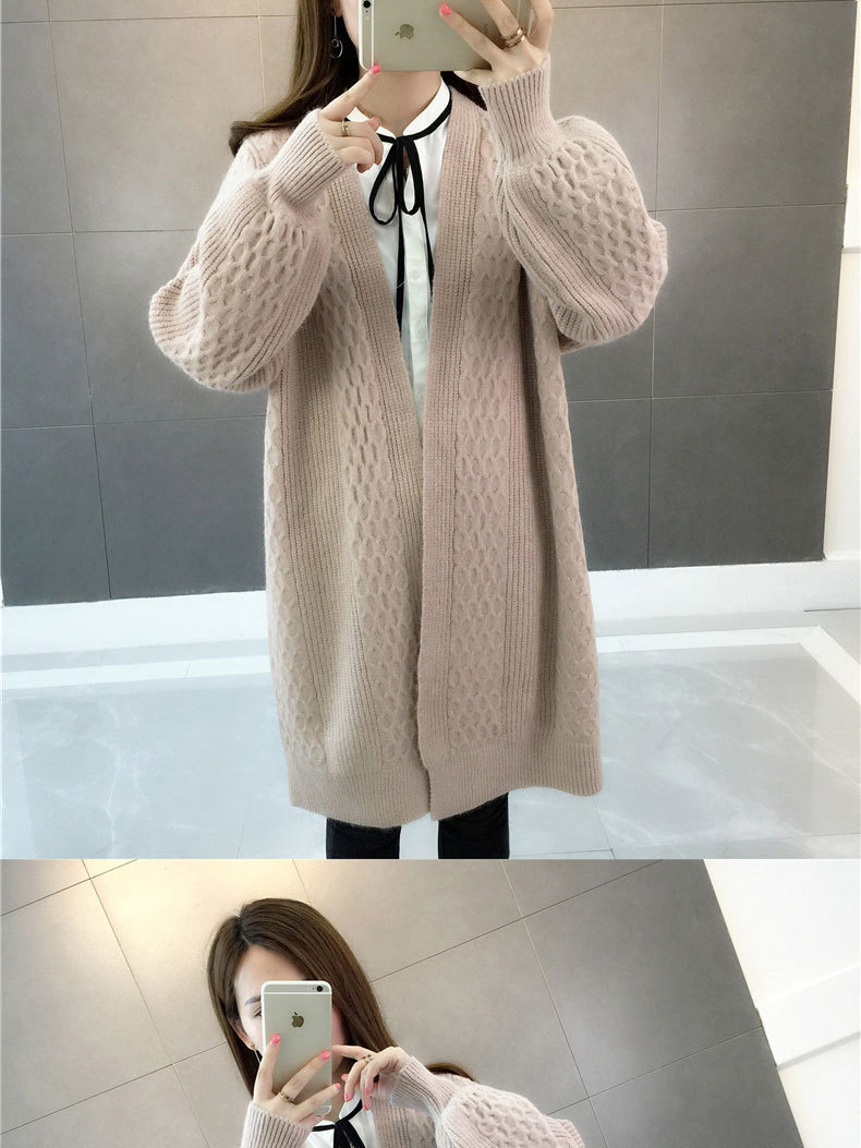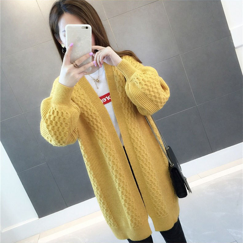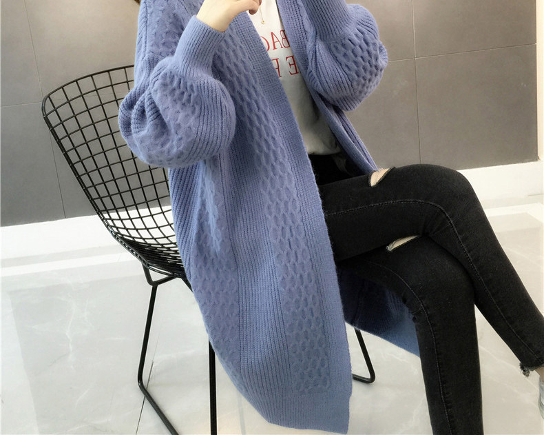 2026 가을 겨울 신상 루즈핏 V넥 랜턴 슬리브 중간 길이 스웨터 가디건 솔리드 컬러 니트 가디건 여성용 아우터스토어 가기