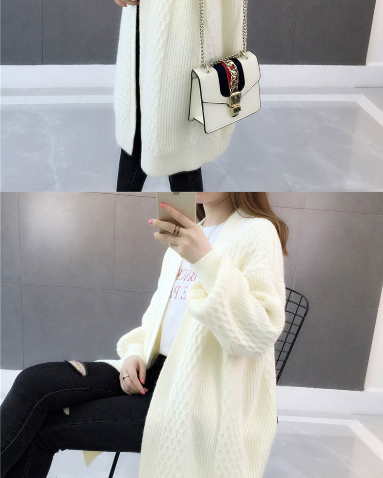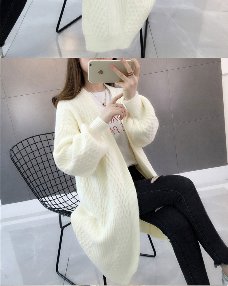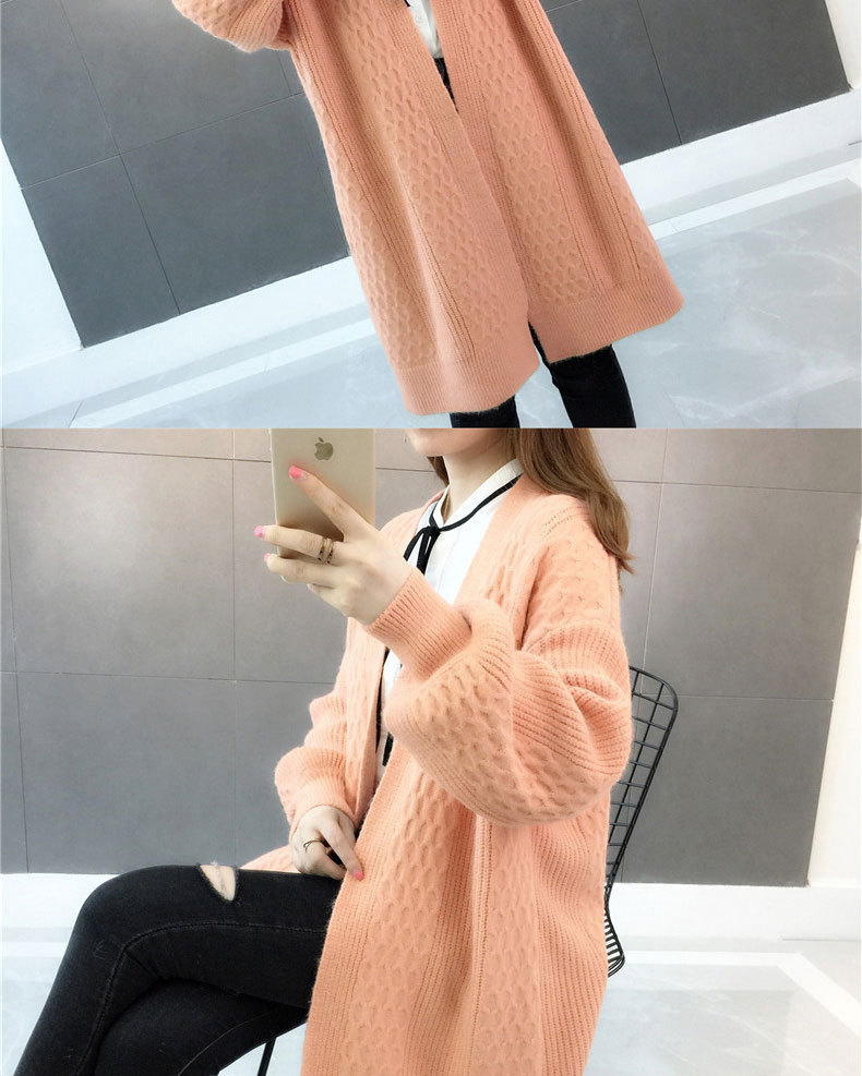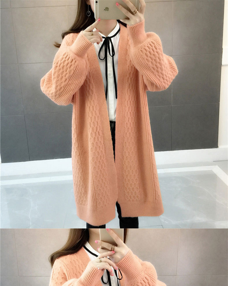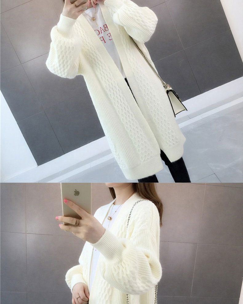 2026 가을 겨울 신상 루즈핏 V넥 랜턴 슬리브 중간 길이 스웨터 가디건 솔리드 컬러 니트 가디건 여성용 아우터