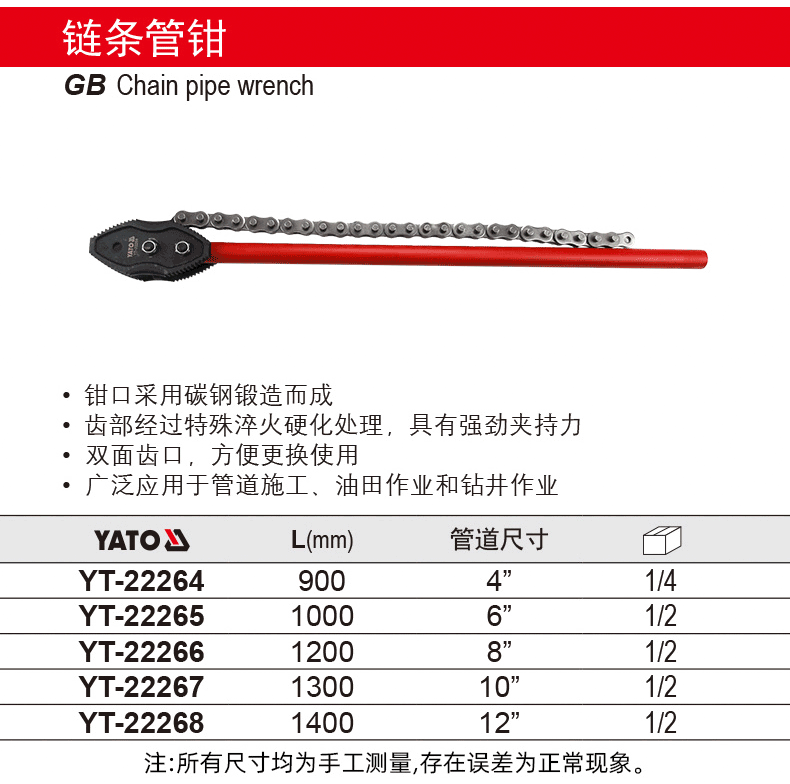 YATO (YATO) 체인 렌치 필터 오일 필터 엘리먼트 교체 해체 및 조립기 오일 필터 그리드 파이프 클램프스토어 가기