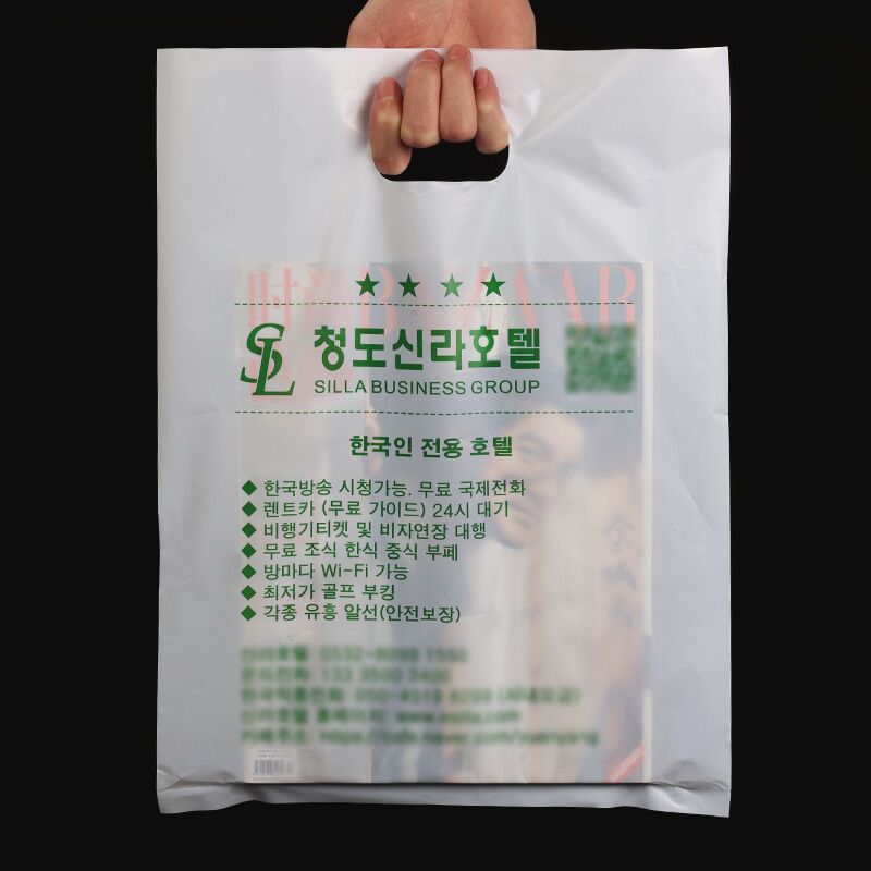 네 손가락 가방 맞춤형 플랫 입 선물 의류 비닐 봉투 펀치 핸드백 그래픽 가방 맞춤형 인쇄 로고스토어 가기