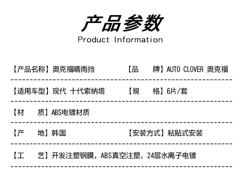 옥포드는 소나타 9/10/11세대에 적합하며, 소나타 개조용 전기 도금 레인 쉴드, 자동차 창문용 레인브로우입니다.