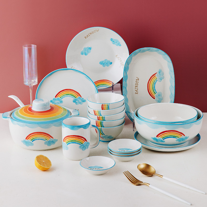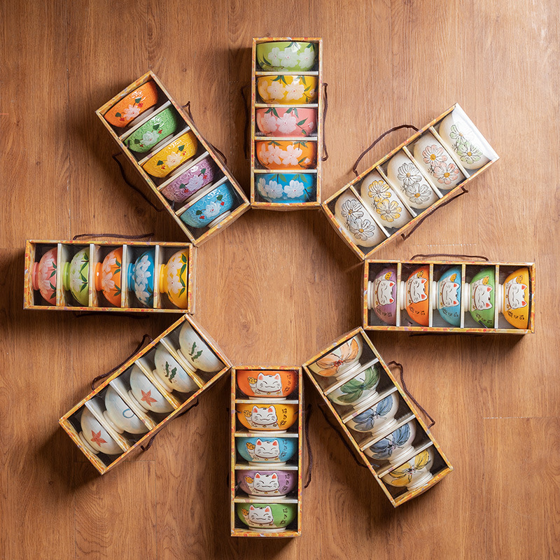 【手绘礼品】日式瓷碗套装 中国风家用碗 中秋节创意陶瓷礼盒餐具