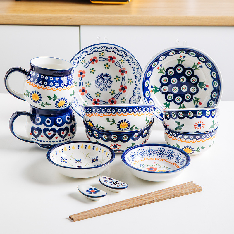 【手绘釉下彩】个性波兰家用碟 创意家居复古民族风餐具陶瓷盘子