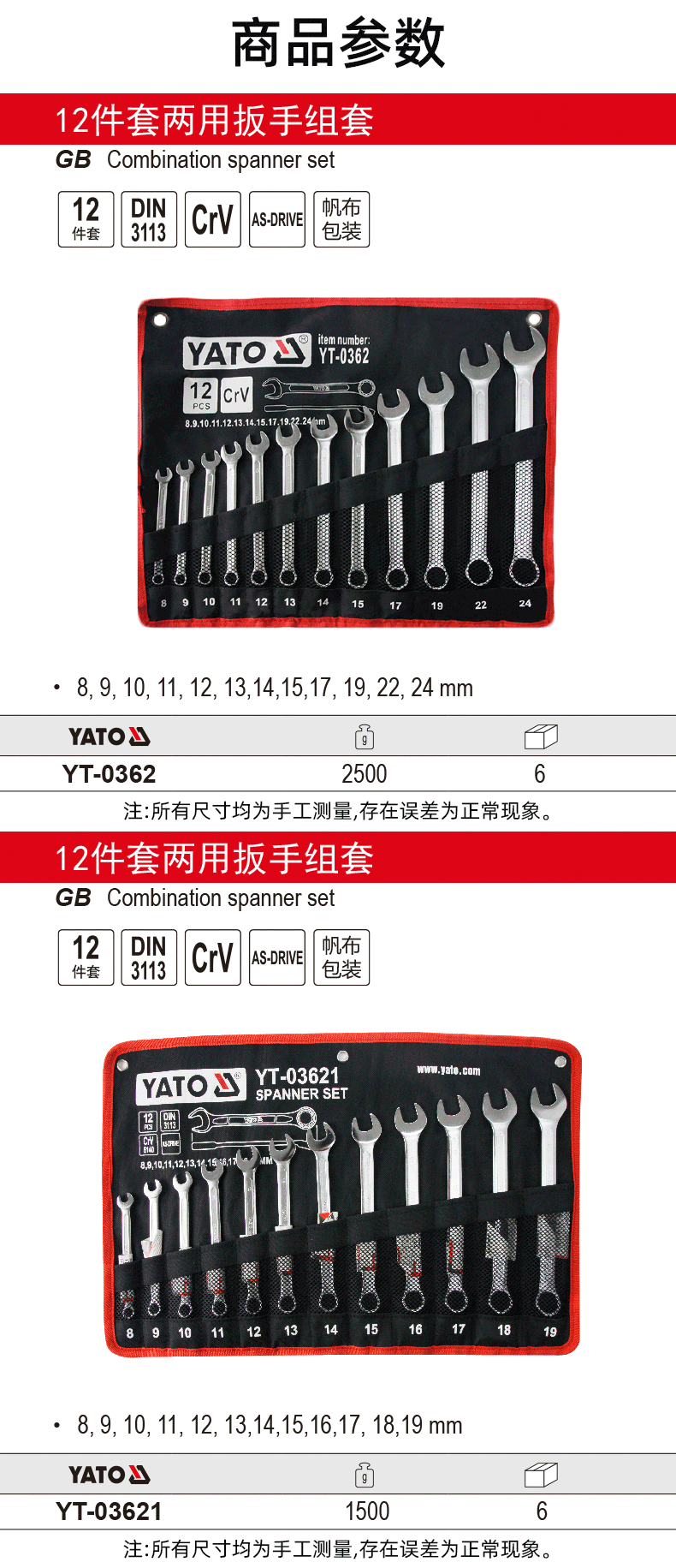 YATO 매화 오픈형 이중 목적 렌치 도구 세트 완전한 스토브 렌치 매화 오픈형 이중 목적 렌치스토어 가기