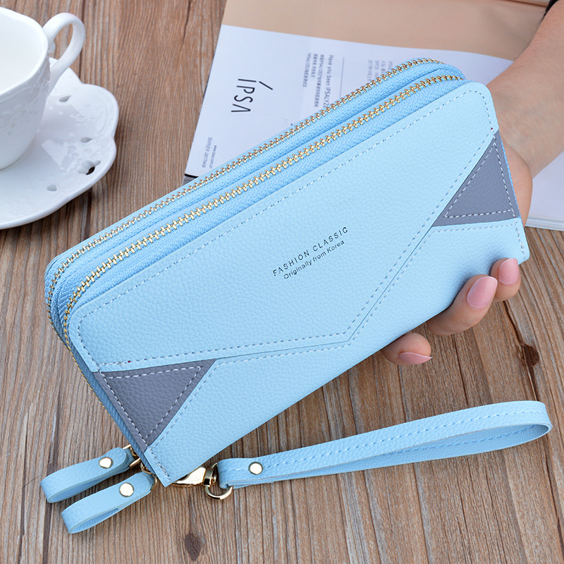 더블 지퍼 지갑 여성용 클러치 백 긴 유행 대비 색상 어머니의 더블 레이어 지갑 대용량 리치 패턴 지갑
