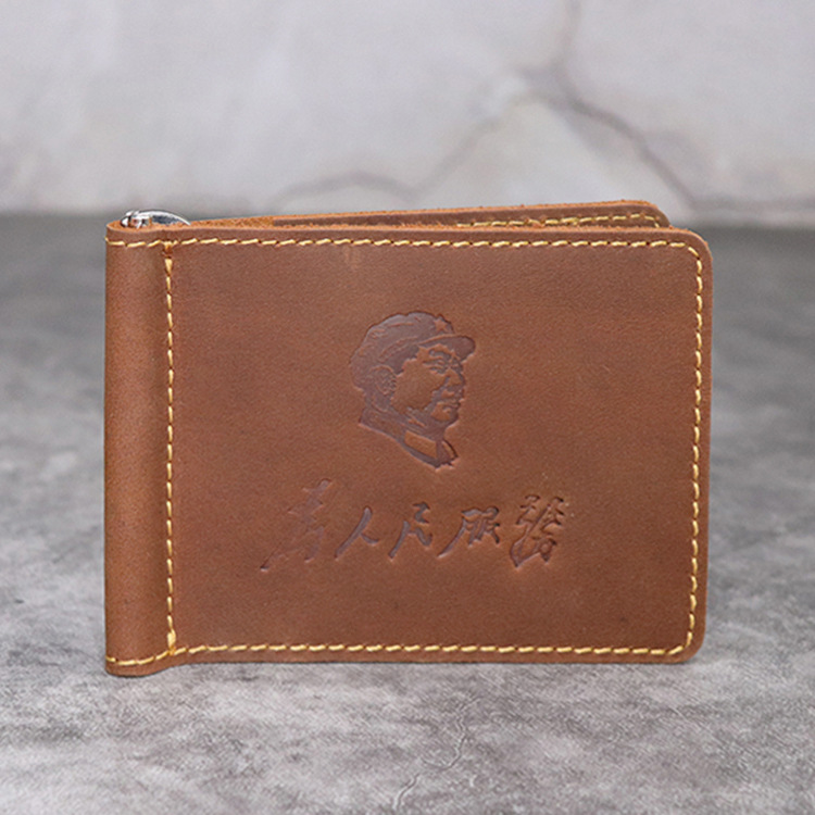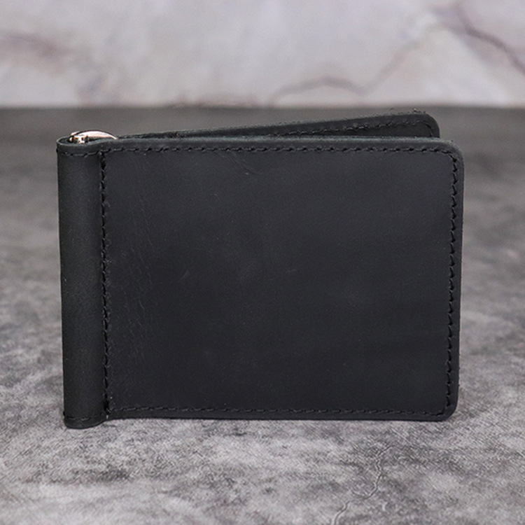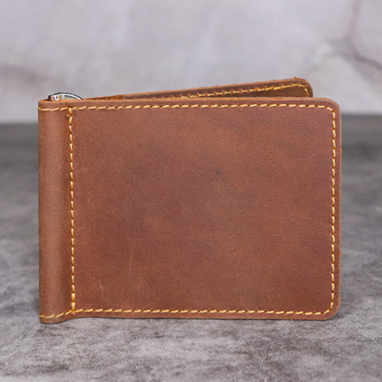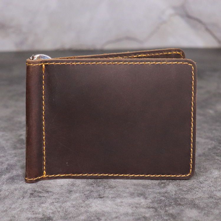 AliExpress 폭발 탑 레이어 크레이지 호스 가죽 심플 뷰티 골드 클립 지갑 가죽 카드 홀더 초박형 레트로 스타일 지갑 도매스토어 가기