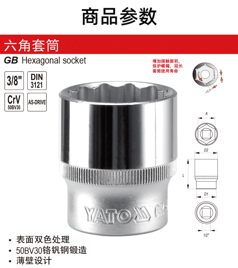 Elto (YATO) 슬리브 헤드 배치 헤드 슬리브 1/2 인치 12.5mm 대형 플라이 쇼트 12 각 슬리브