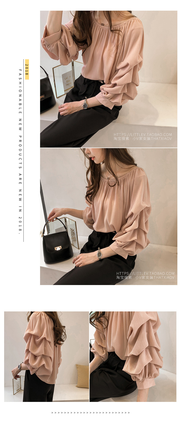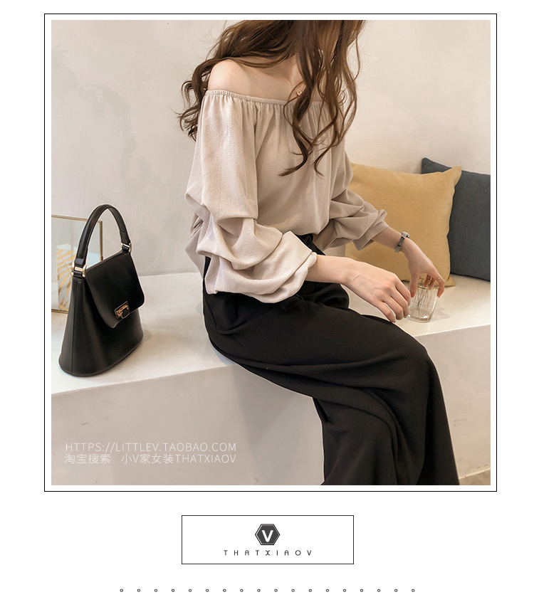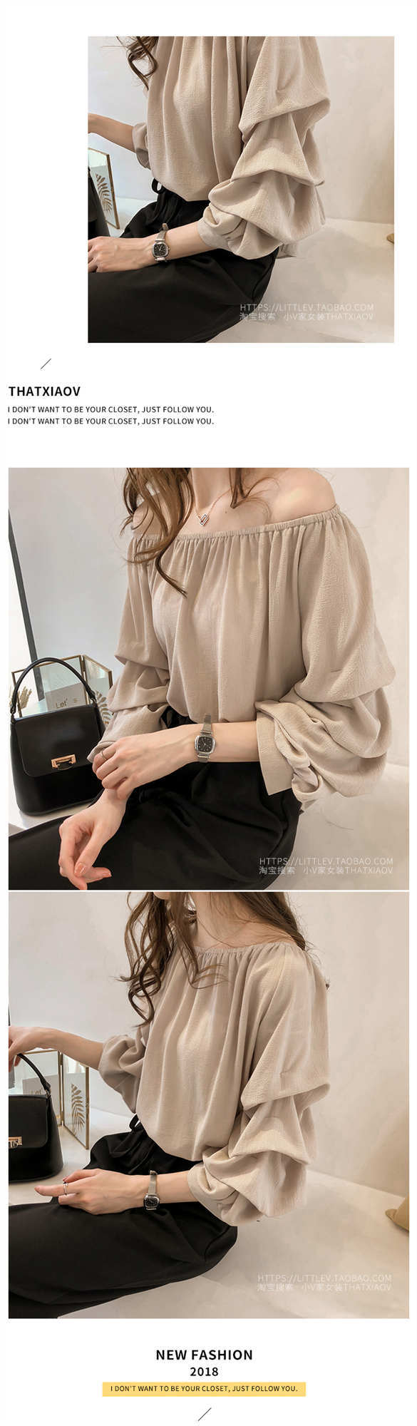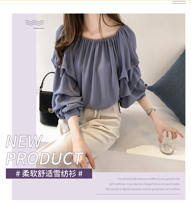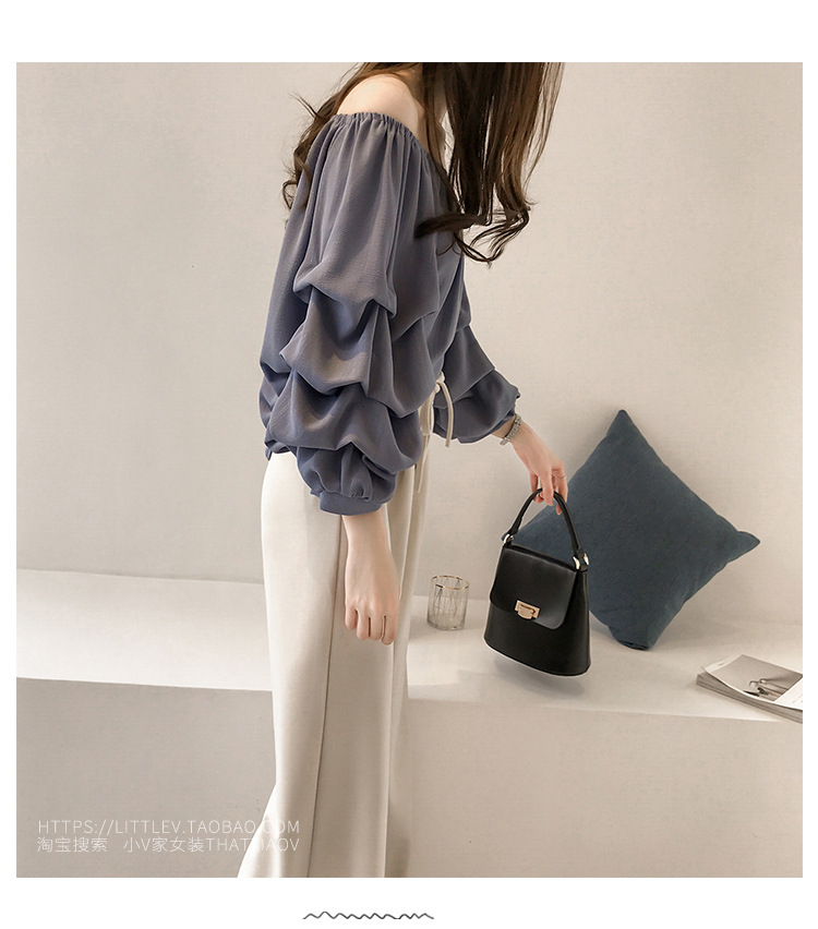 现货 夏季新款韩版一字领露肩宽松层层雪纺衫飘逸长袖上衣衬衫女