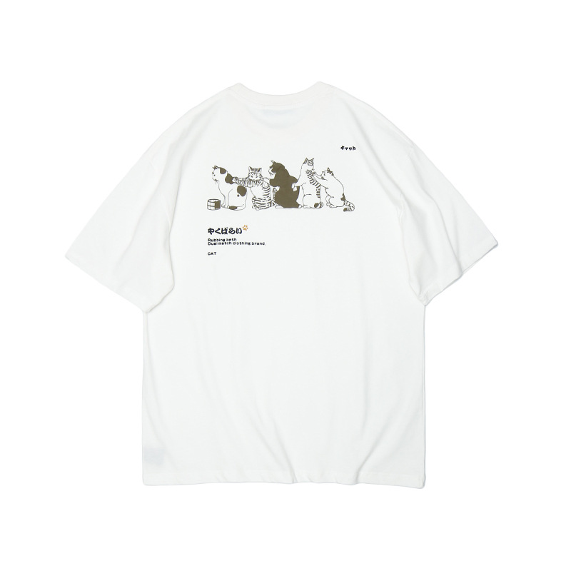 세로 남성 일본 재미 고양이 야옹 티셔츠 새로운 트렌디 브랜드 ins 루즈 캐주얼 하라주쿠 스타일 커플 티 여름스토어 가기
