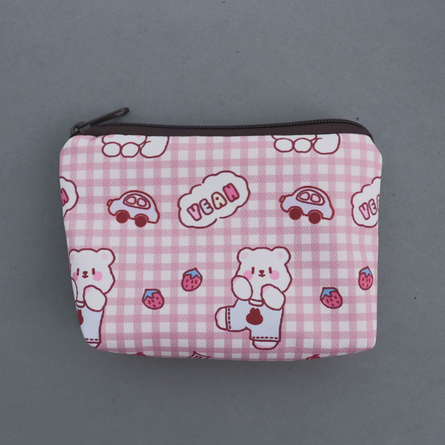 • 핑크 격자 무늬 곰