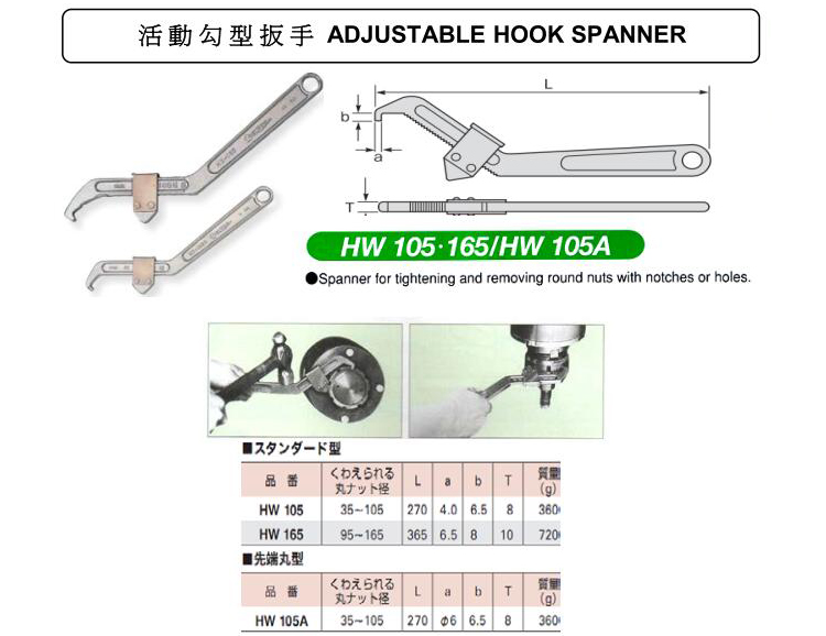일본 슈퍼 시바 후크 렌치 작은 오버로드 초승달 고리 조절 렌치 HW-10 105 165