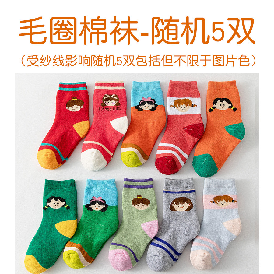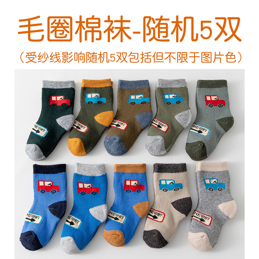 가을과 겨울 새로운 테리 아기 양말 두꺼운 기모 어린이 테리 양말 튜브 양말 만화 컬러 매칭 아기면 양말스토어 가기