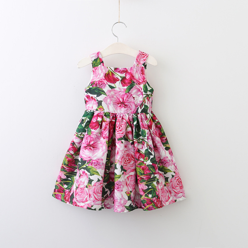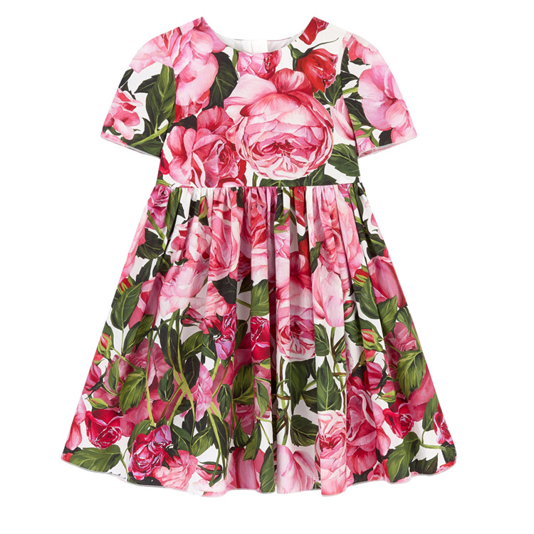 2025년 신상 아동용 스커트 봄 여름 여아용 풀 프린트 반팔 원피스 유아용 스커트 유럽 및 미국 스타일 대나무 면 얇은 원단