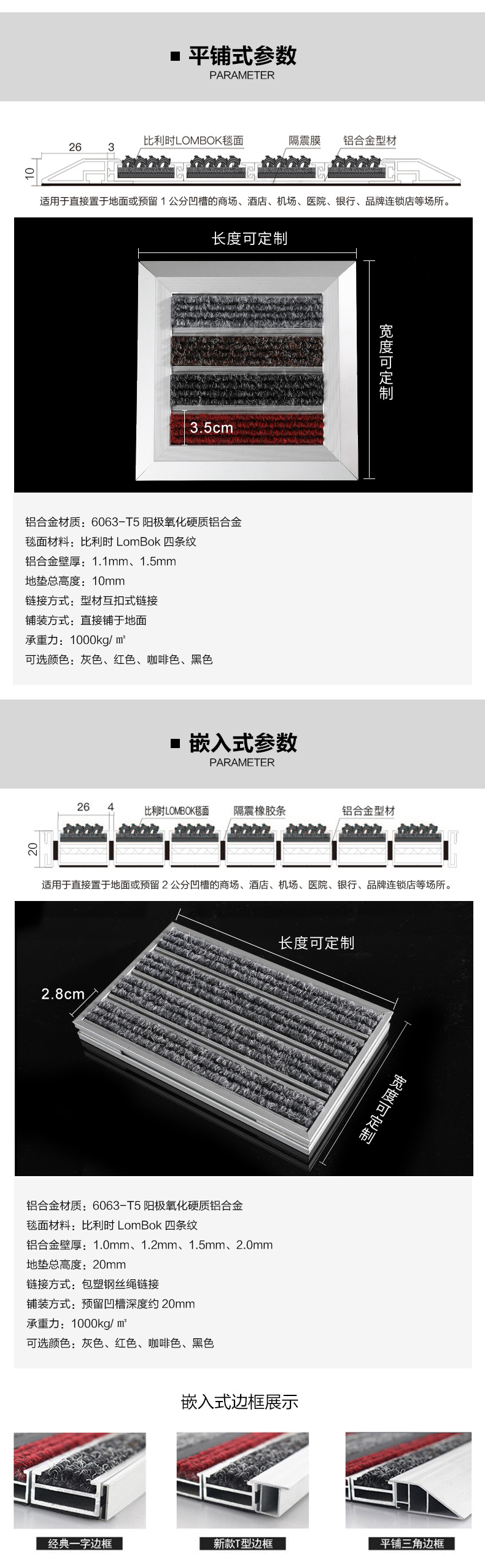 도매용 두꺼운 도어매트 미끄럼 방지 오염 방지 무소음 매트 호텔 입구 맞춤형 카펫 알루미늄 합금 바닥매트