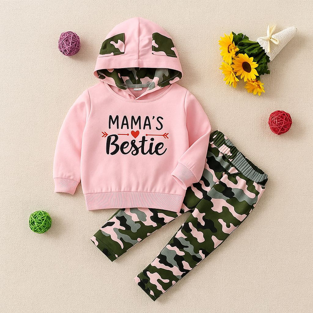 여자 봄 가을 후드 조끼 작은 세트 여성 아기 긴 소매 재킷 + 위장 바지 2 종 세트 아동 의류