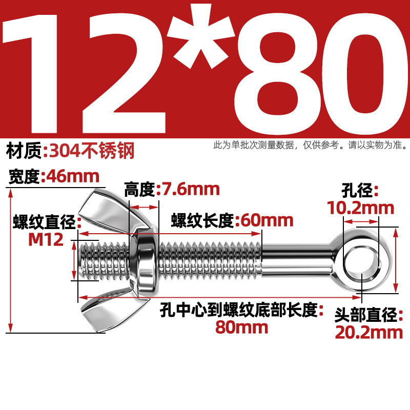 304 스테인레스 스틸 조인트 볼트 나비 너트 세트 물고기 눈 구멍 조합 나사 M5M6M8M10M12MM