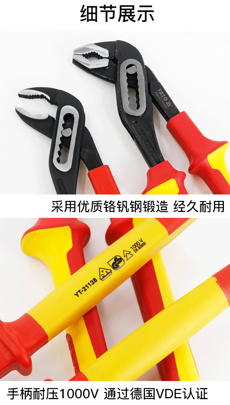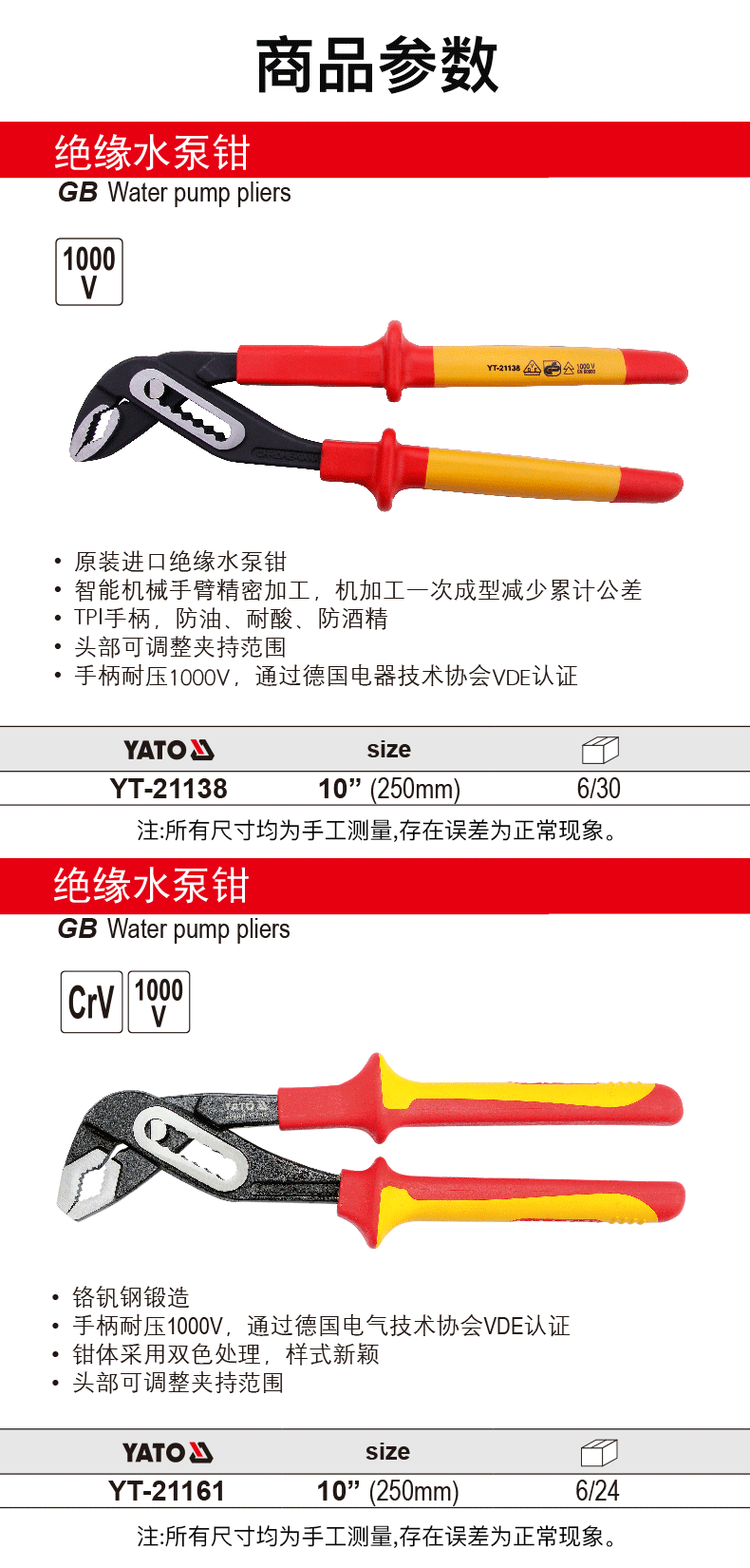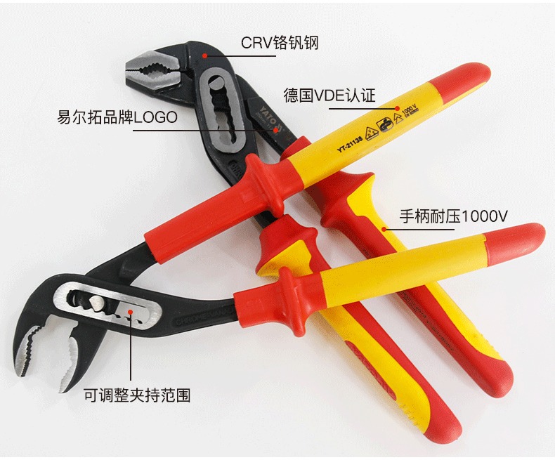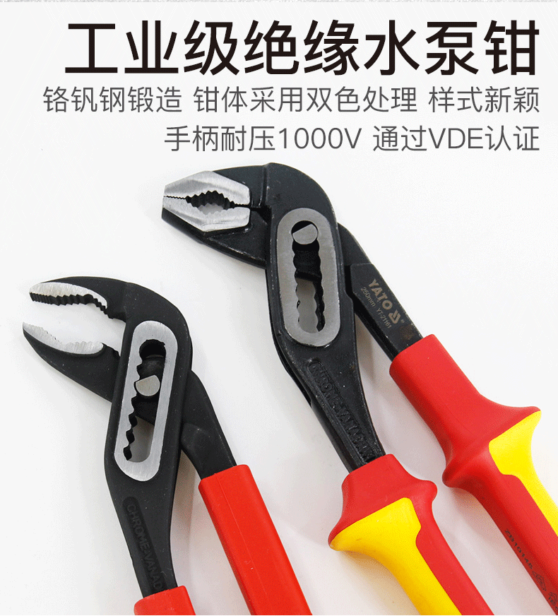 YATO 절연 워터 펌프 플라이어 오리지널 수입 수도관 클램프형 파이프 렌치 대입 개방 10 인치 호스 공구
