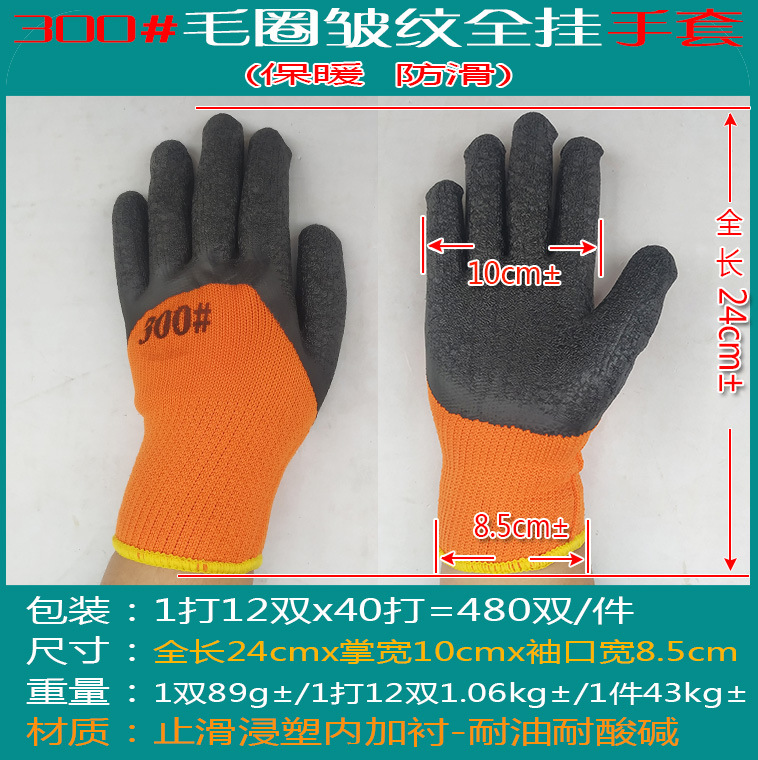 【商品名称】:300#毛圈皱纹全挂手套