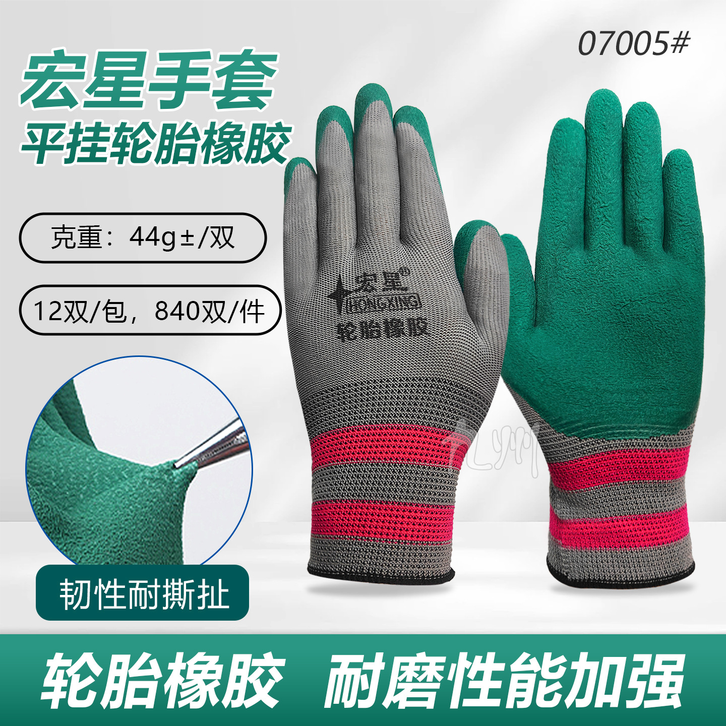 • Hongxing 회색 거즈 녹색 고무 타이어 고무 플랫 교수형 장갑 07005 #