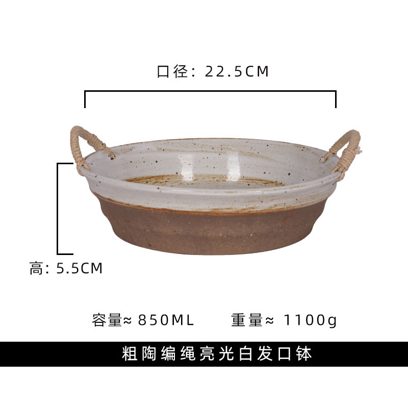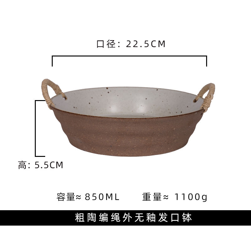일본식 거친 도자기 대마 로프 바이 노럴 플레이트 대형 가정용 접시 깊은 수프 플레이트 빈티지 홈스테이 식기 외부 실 야채 분지