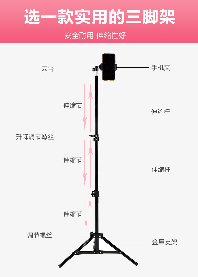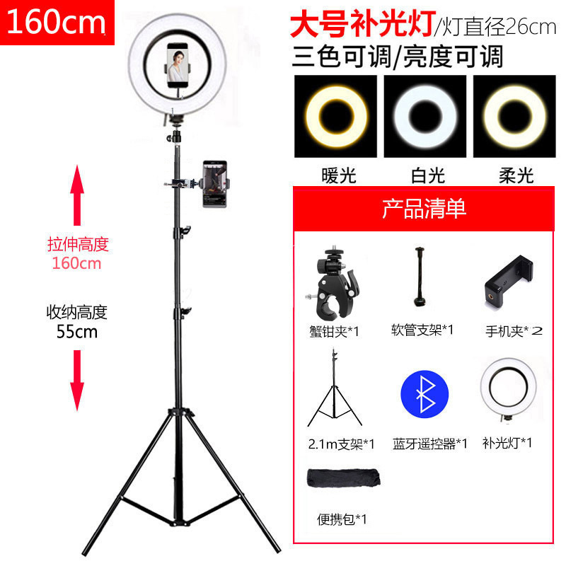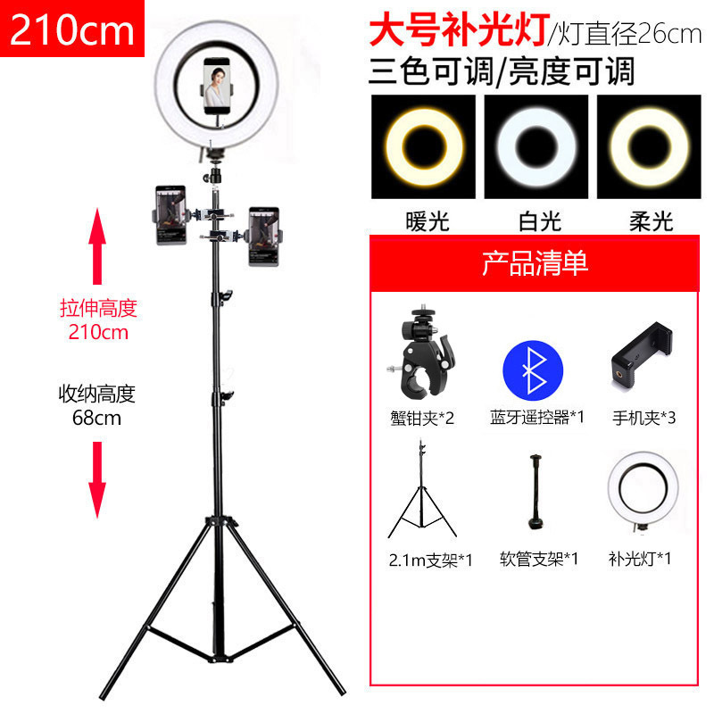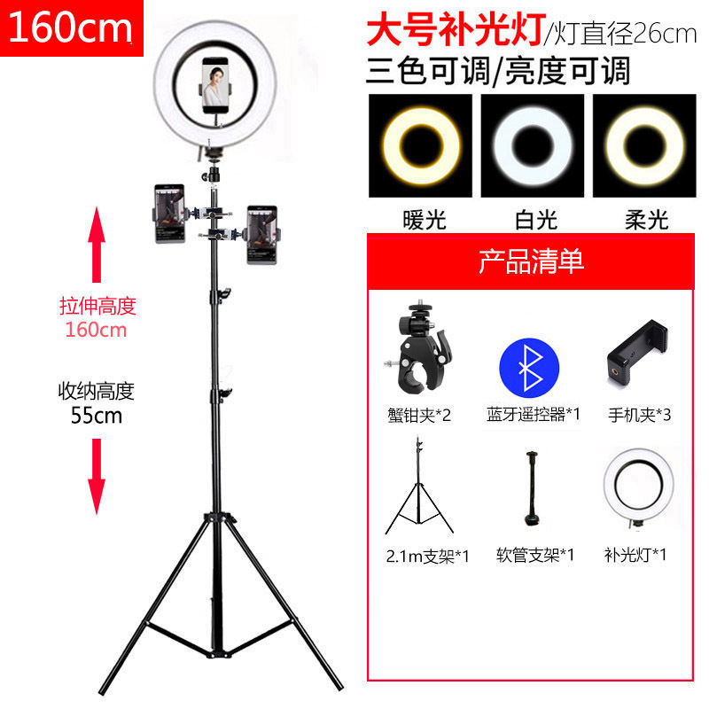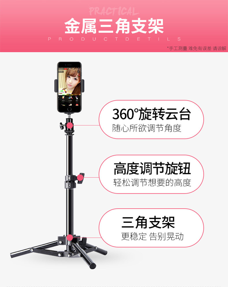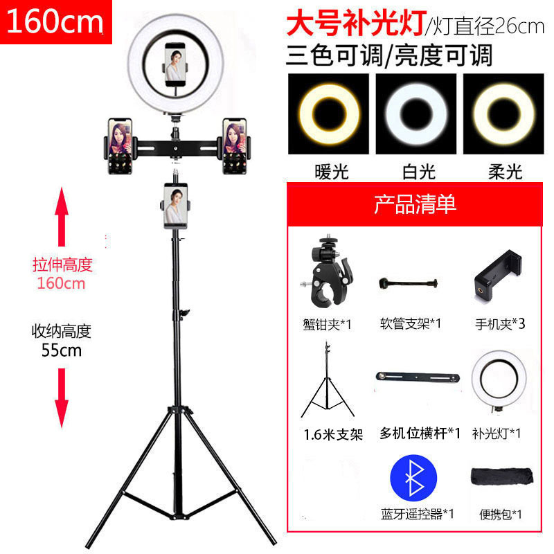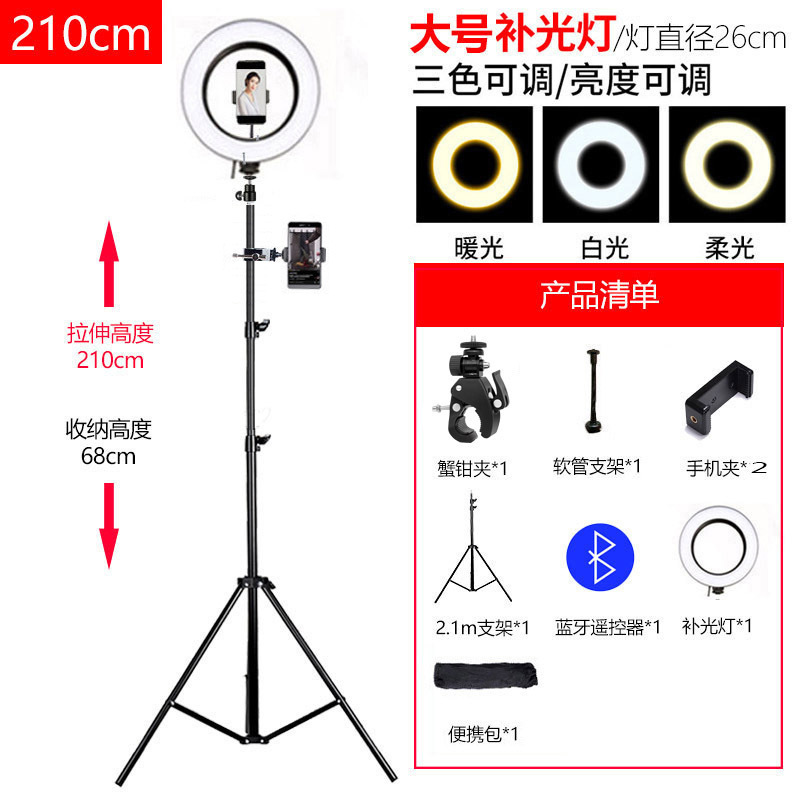 휴대폰 라이브 방송 스탠드, 사진 촬영 삼각대, 앵커 셀카, 틱톡 사진 삼각대, 보조 조명, 접이식, 뷰티라이트