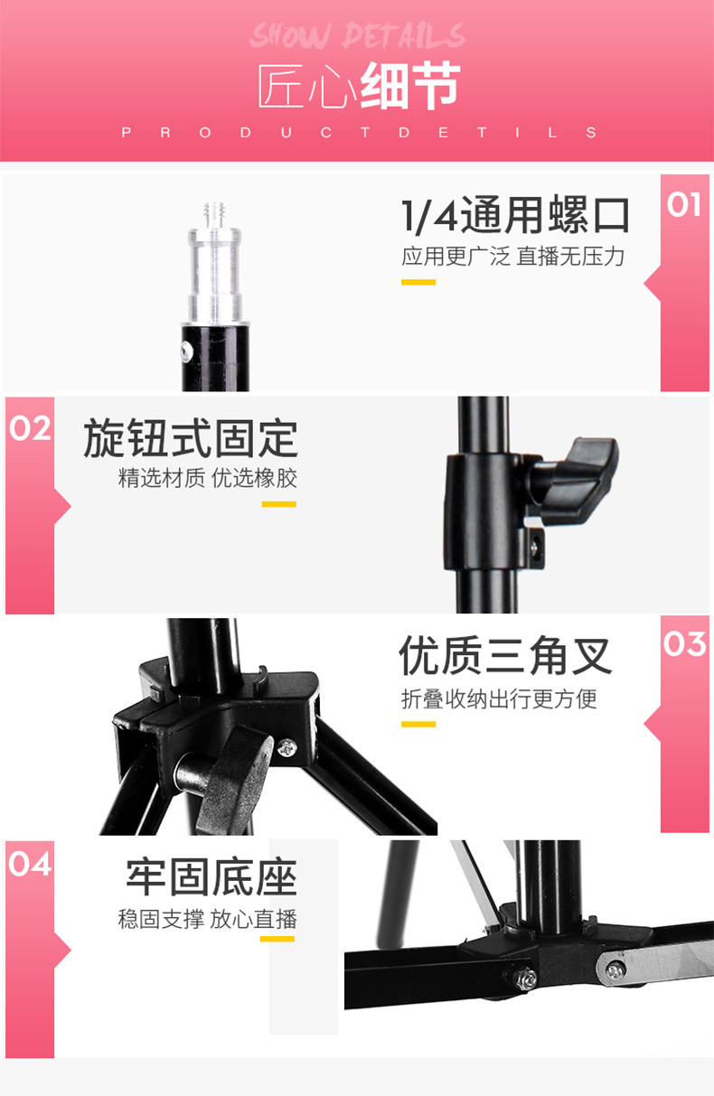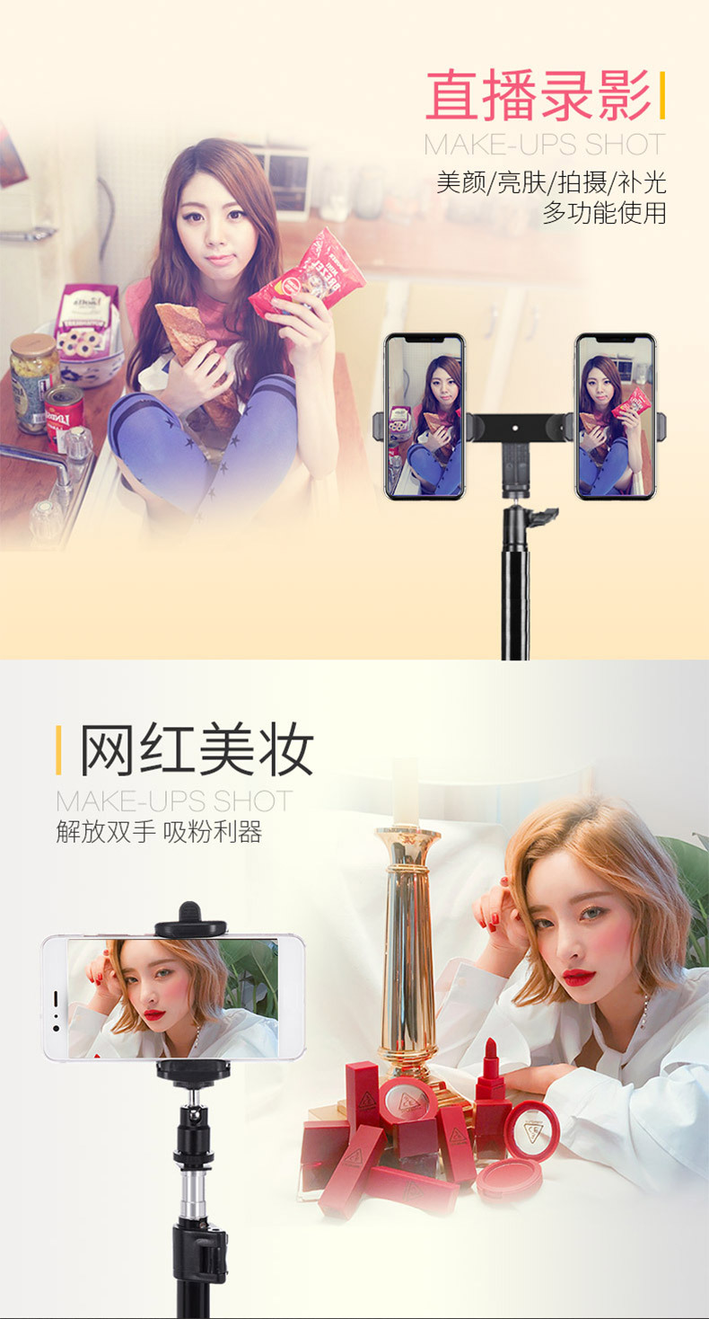 휴대폰 라이브 방송 스탠드, 사진 촬영 삼각대, 앵커 셀카, 틱톡 사진 삼각대, 보조 조명, 접이식, 뷰티라이트스토어 가기