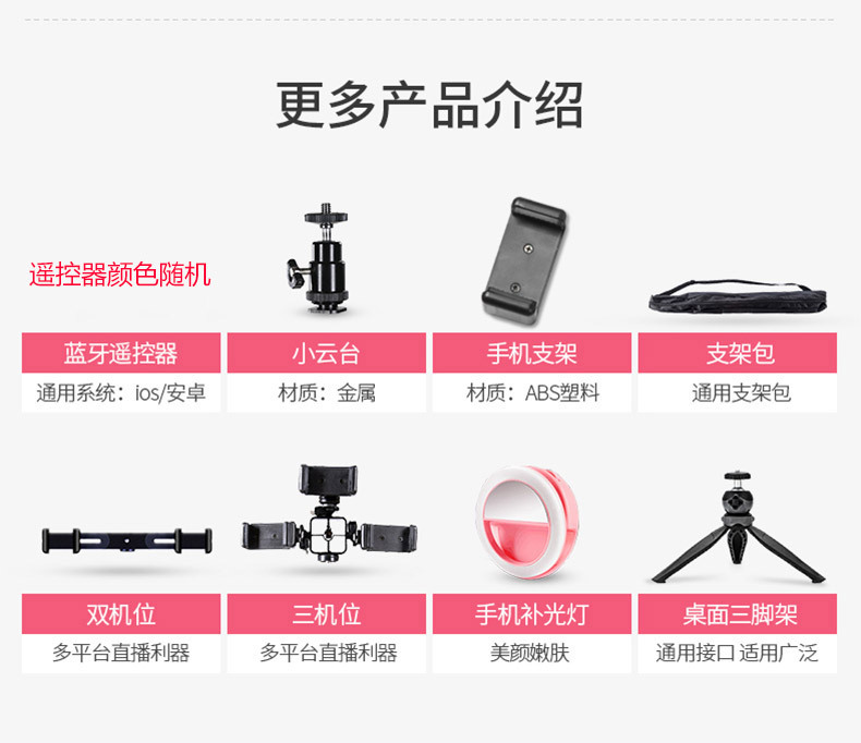 • [25] 160cm 미 4 기 리모콘 세트 [대형 필 라이트 + 리모콘 + 티안 지 클립 + 호스 브래킷 + 휴대폰 클립 + 게 클립 + 휴대용