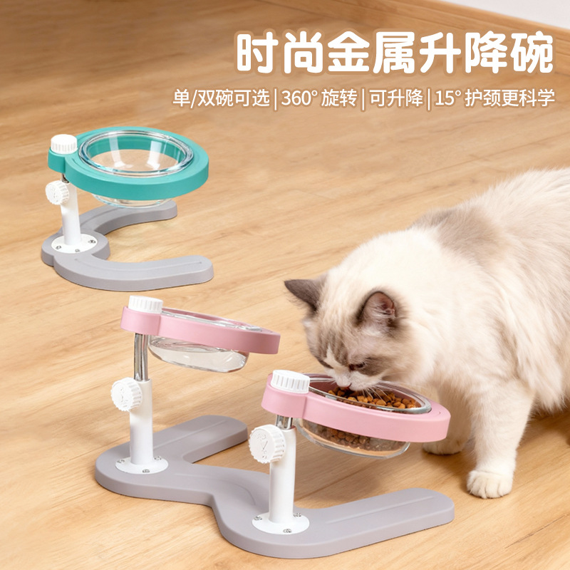 애완동물 높이 조절 가능 식기, 소형견 및 고양이용 미끄럼 방지 목 보호 경사형 유리 그릇, 고양이 사료 그릇, 해외 직구 고양이 및 강아지 그릇