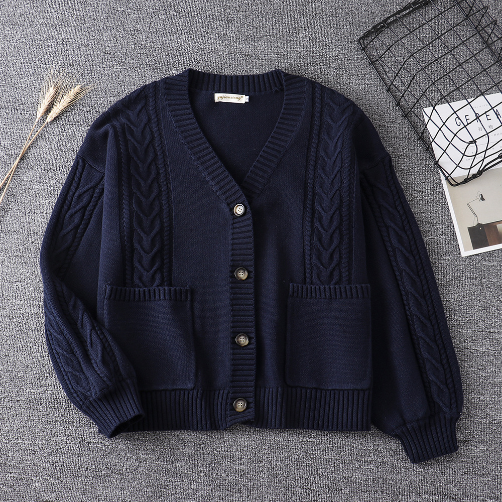 새로운 JK 유니폼 스웨터 여러 가지 빛깔의 느슨한 트위스트 면 니트 두꺼운 스웨터 대학 스타일 일본 가디건스토어 가기