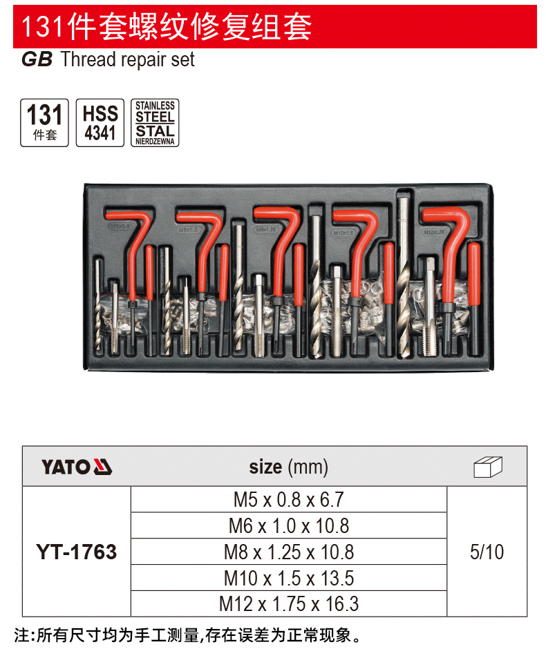 • YT-17631 M5x0.8mm 스레드 수리 도구 세트