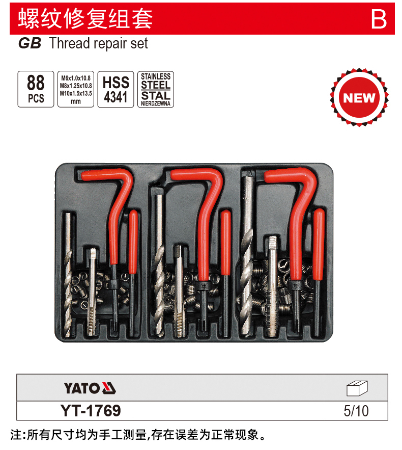 • YT-17632 M6x1.0mm 스레드 수리 도구 세트