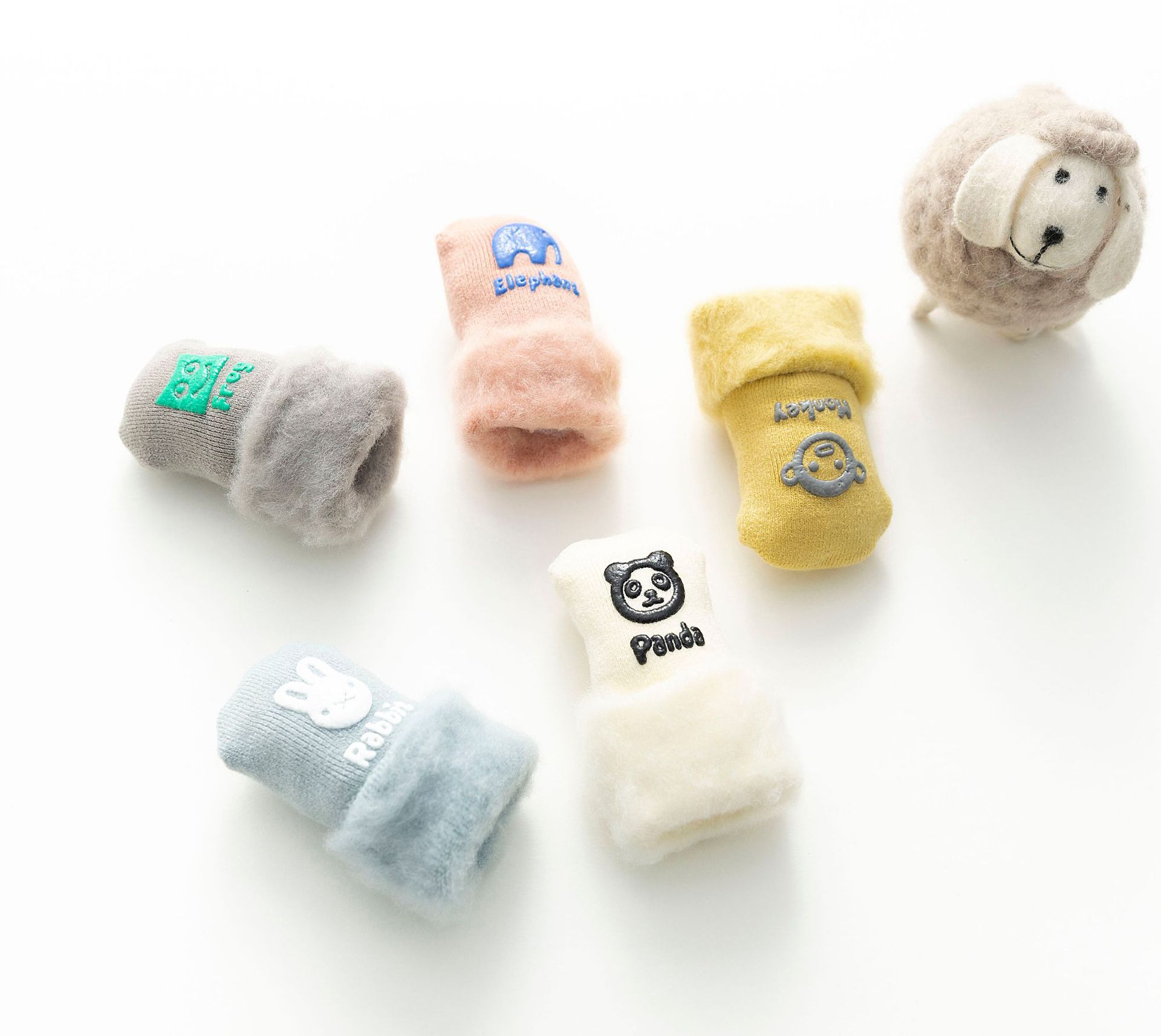 가을과 겨울 새로운 두꺼운 아기 양말 어린이 만화 분배 미끄럼 방지 바닥 양말 기모 강모 아기 양말스토어 가기