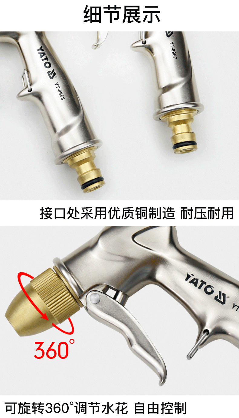 YATO 원예 급수 야채 스프링클러 헤드 정원 물총 헤드 스프레이 조절 고압 세차 노즐