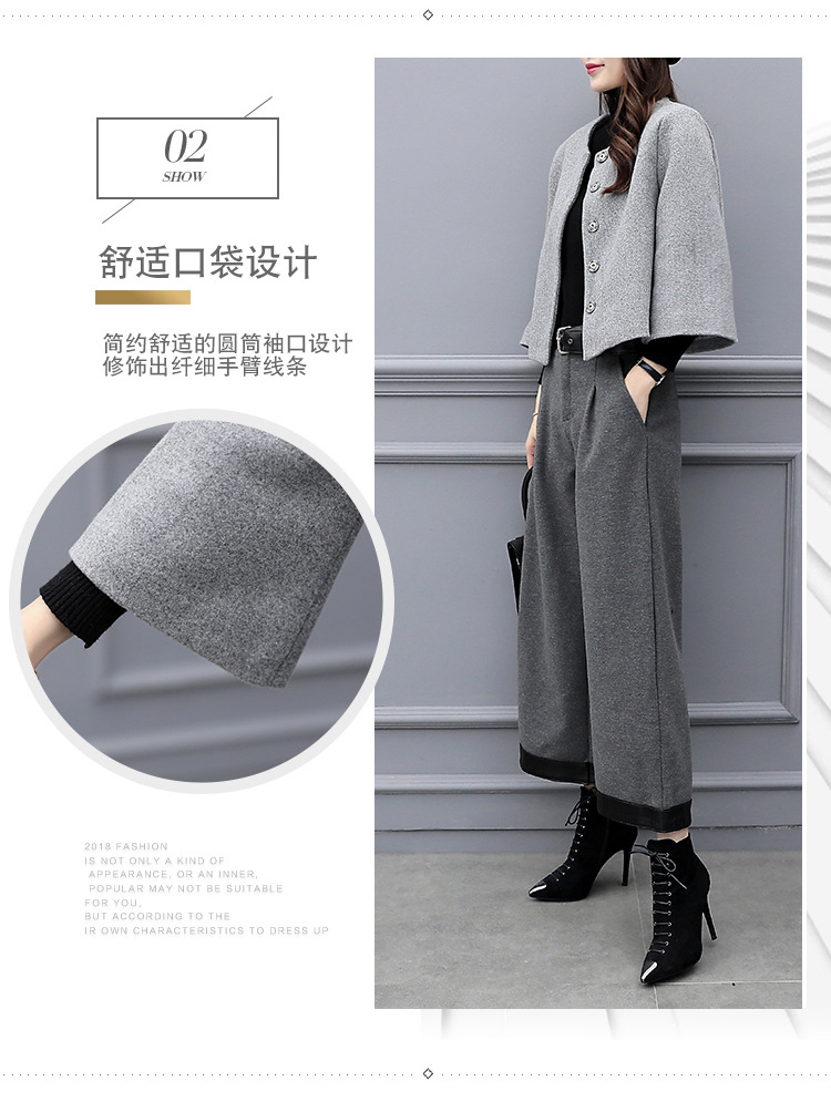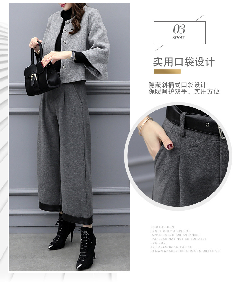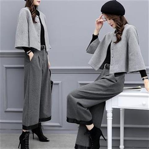 2025 신상 여성 가을 겨울 빅사이즈 투피스 세트 모직 숏 재킷 와이드 팬츠 캐주얼 패션 세트 여성 트렌드