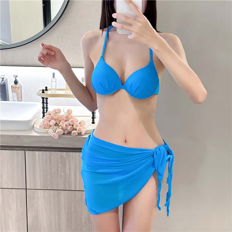 해변 휴가 핑크 핑크 빨간 비키니 수영복 여자의 강철 브래킷 푸시 업 크기 가슴 섹시한 3 점 수영복