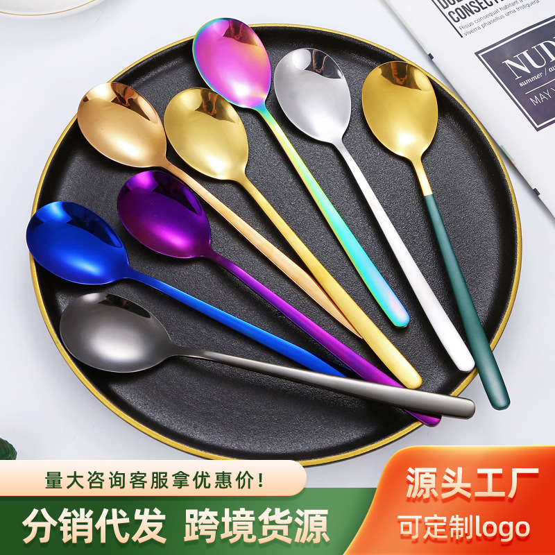 304 스테인리스 한국 숟가락 창조적 인 디저트 커피 혼합 숟가락 가정용 숟가락 학생 휴대용 식기 숟가락