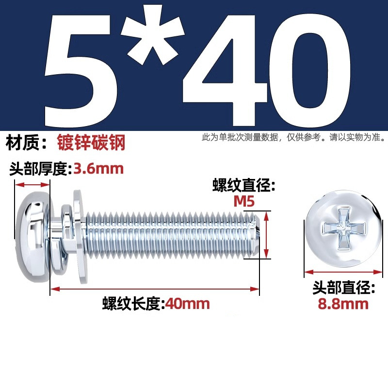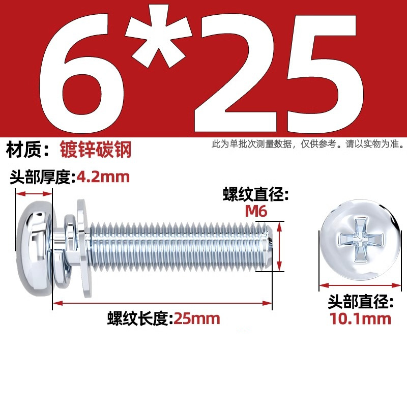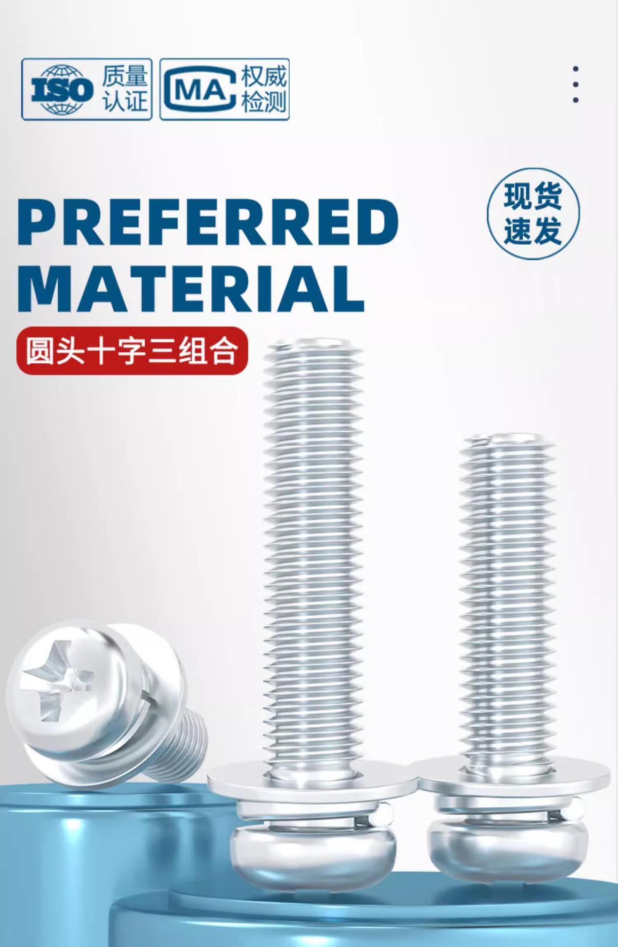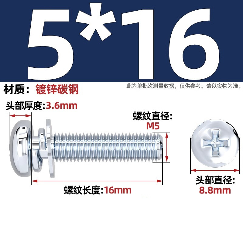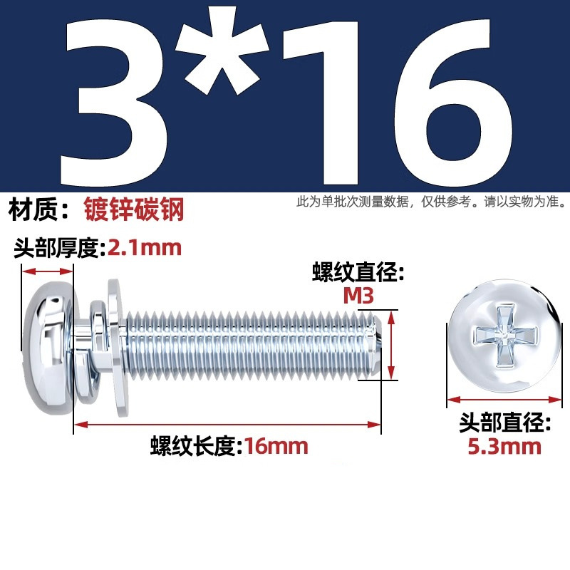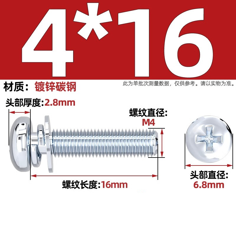백색 아연 도금된 원형 머리 십자형 3중 복합 나사, 플랫 스프링 와셔가 있는 팬 헤드 복합 나사 M2M5M3M4M5M6mm
