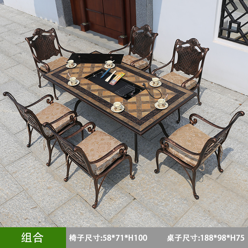 공장 핫 세일 야외 캐스트 알루미늄 테이블과 의자 세트 안뜰 정원 야외 가구 야외 바베큐 테이블 야외 식탁