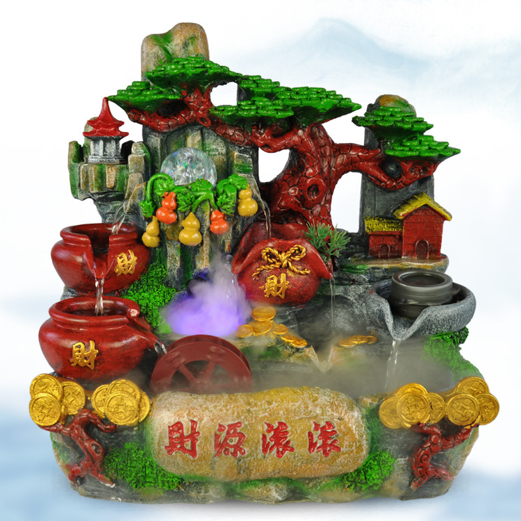 Rockery 물 분수 풍수 바퀴 작은 장식품 물 바퀴 실내 데스크탑 풍경 장식 돈을 버는 사업 선물