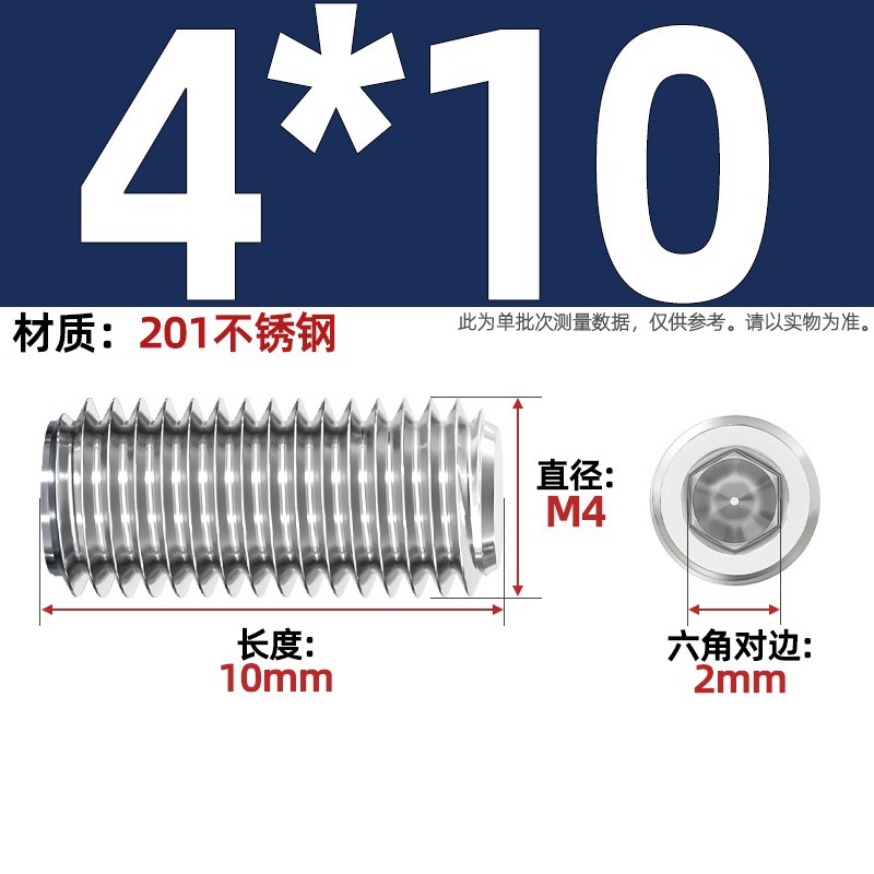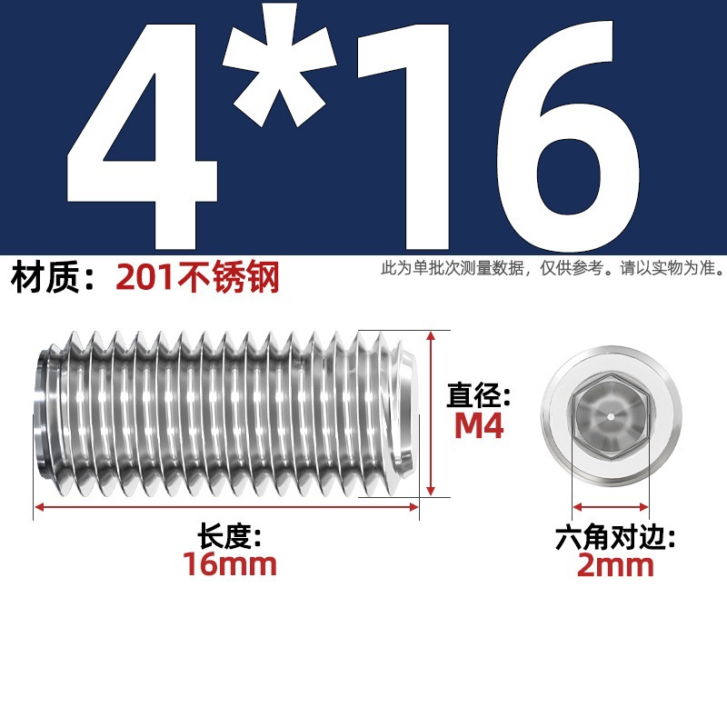 201 스테인레스 스틸 육각형 소켓 플랫 엔드 세트 나사 머리없는 나사 기계 탑 와이어 M3M4M5M6M8M10-M16