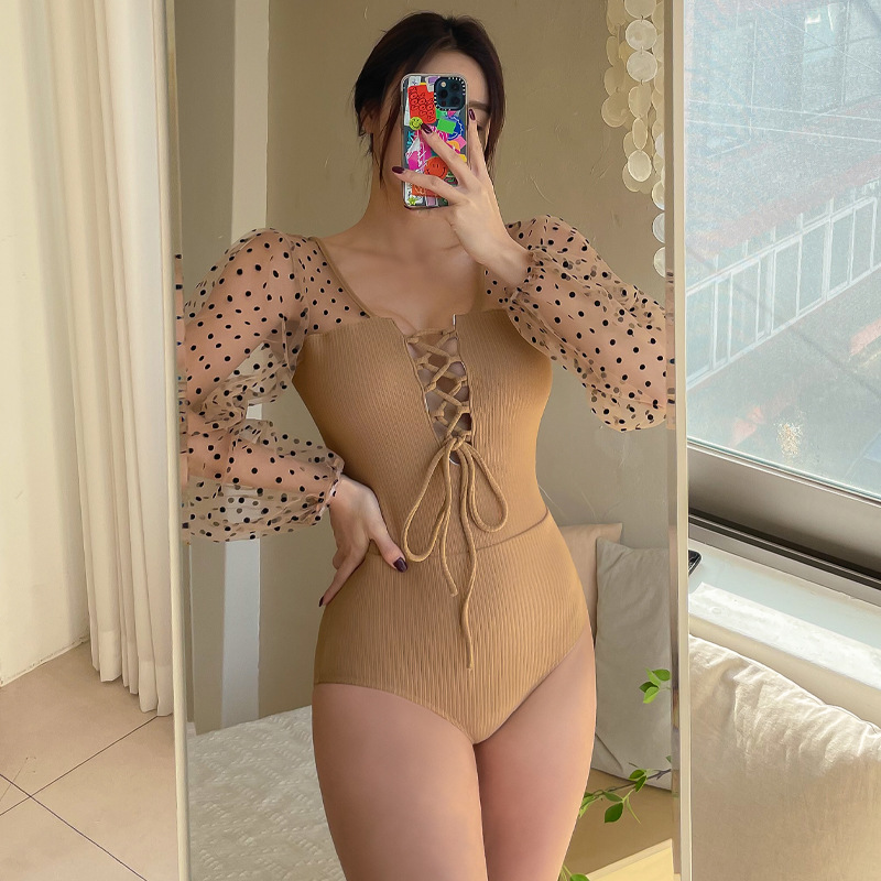 한국식 새로운 온천 작은 가슴 개더 섹시한 긴 등이없는 원피스 삼각형 배꼽 커버 슬리밍 섹시한 수영복 여성용스토어 가기