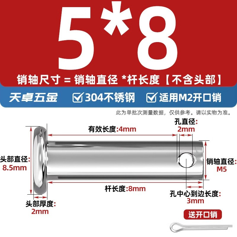 304 스테인레스 스틸 핀 플랫 헤드 구멍 핀 핀 GB882 원통형 위치 핀 분할 핀 세트 포함스토어 가기