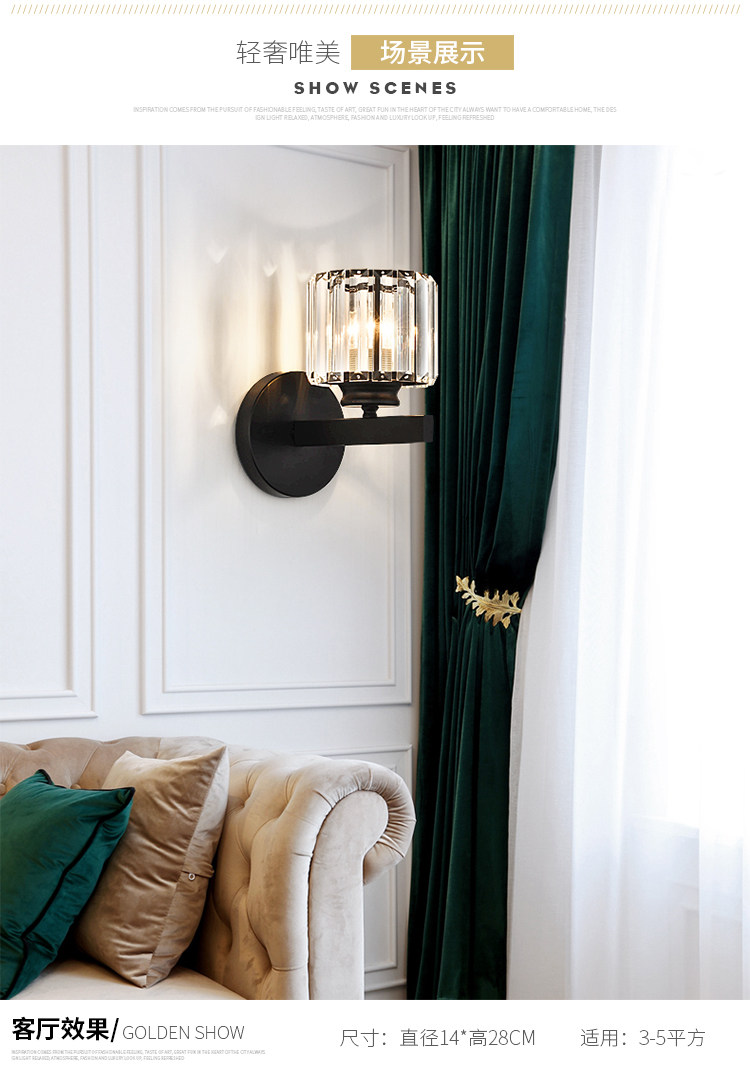 침실 벽 램프 침대 옆 램프 창조적 인 간단한 연구 거실 발코니 포스트 모던 북유럽 배경 벽 크리스탈 벽 램프스토어 가기