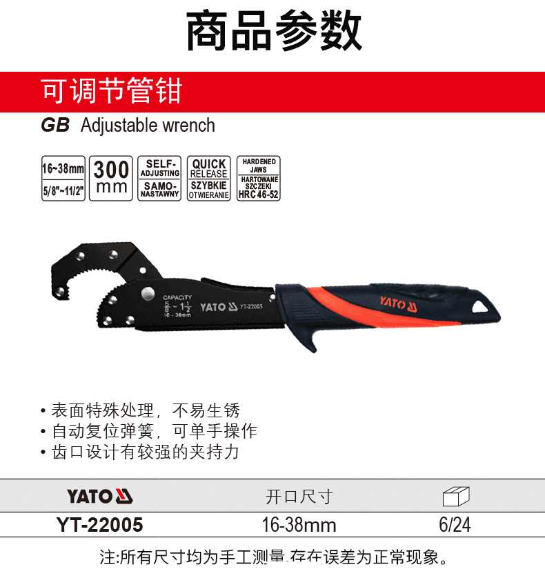 YATO 조정 가능한 파이프 펜치 파이프 펜치 렌치 수도관 펜치 다기능 범용 파이프 와이어 파이프 후두 펜치 파이프 펜치
